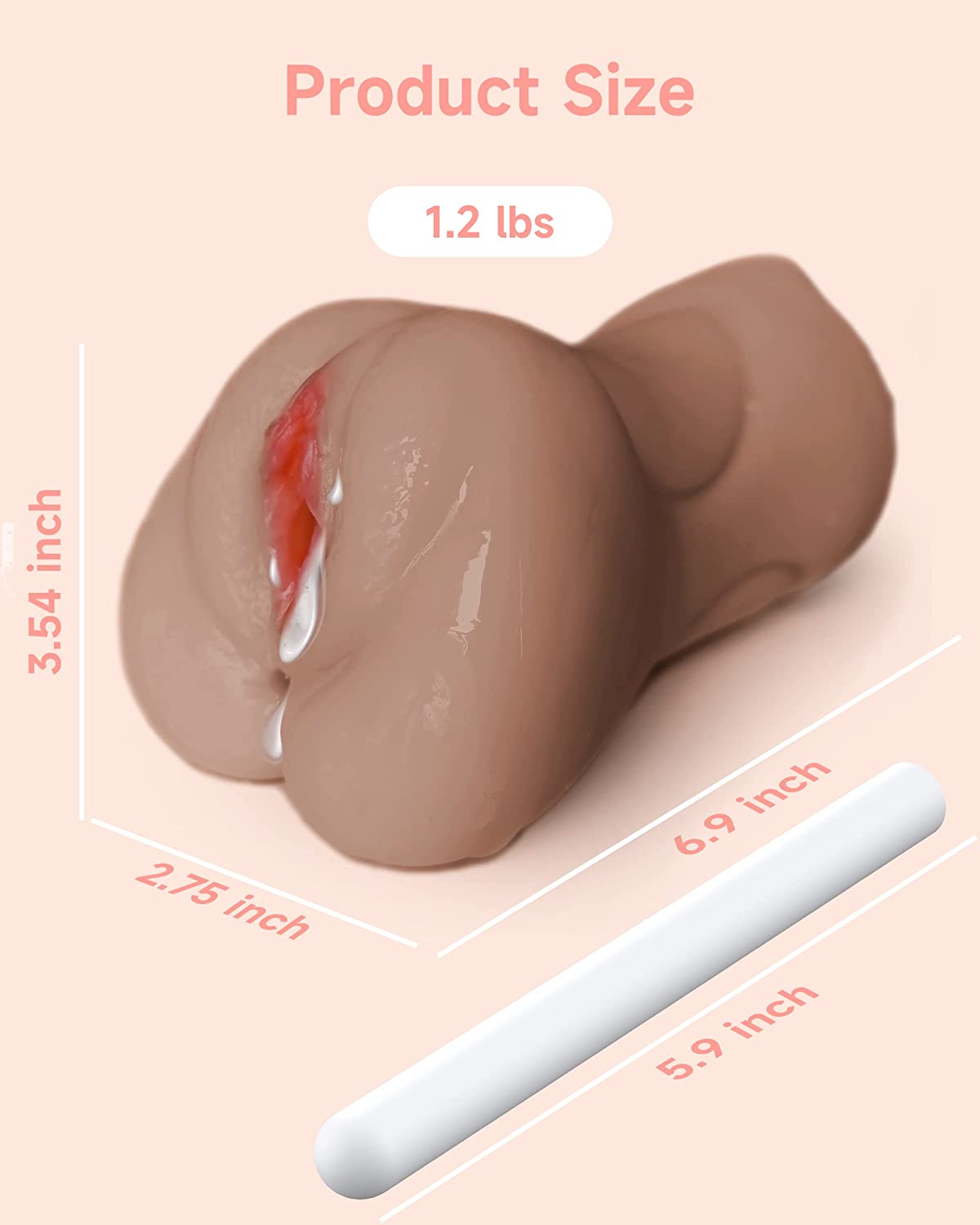 3 in 1 Male Masturbator Realistic Pocket Pussy with Drying Stick, Mansbatee Double-Ended Male Sex Toy Mouth Tongue Textured Vagina & Tight Anus for Men Masturbation (Wheat Skin)