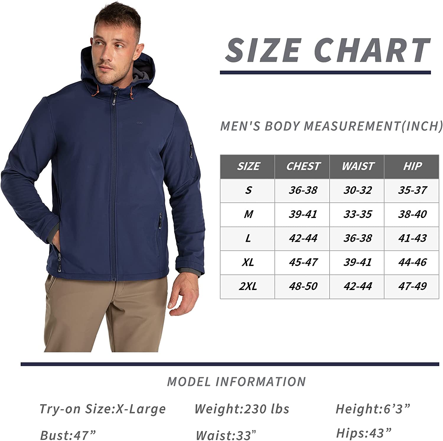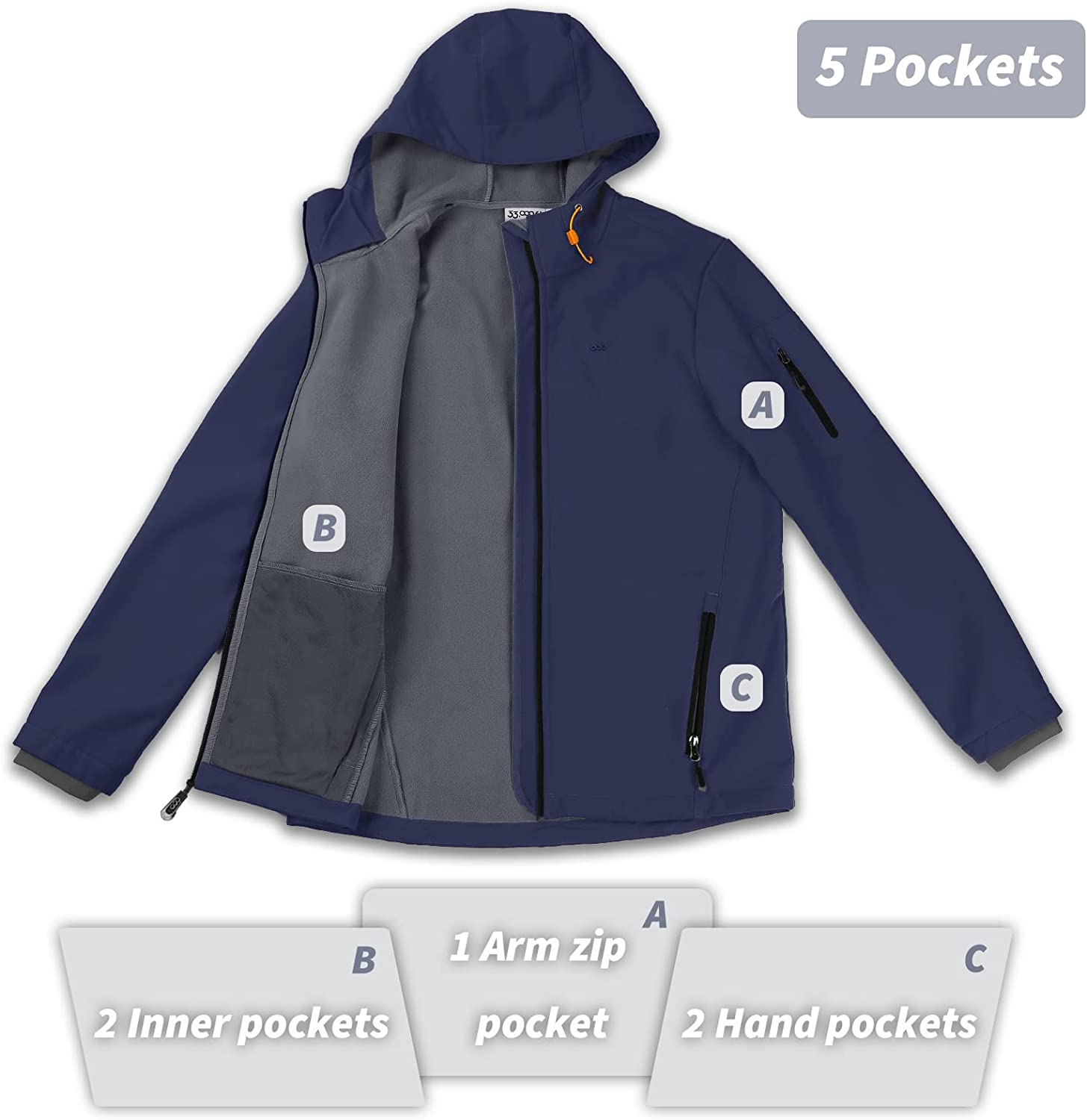 33,000ft Men's Softshell Jacket Fleece Lined, Water Resistant Winter Warm Shell Jacket Coat Lightweight Outdoor Hiking