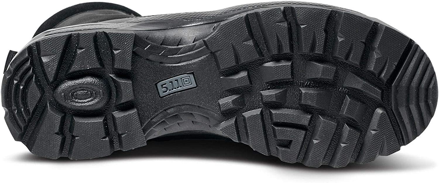The boot worn by the world's leading public safety Personnel, the 5.11 A.T.A.C., just got promoted. It's lighter and more comfortable, yet maintains its reputation for toughness and durability. A new air flow tongue and full-length dual durometer ortholite footbed work to keep your feet cool, dry and comfortable all day, every day. Another new feature, The achilles heel flex zone, gives a critical part of your foot more range of motion without compromising support. The full-grain leather toe, 840D nylon upper and shock Mitigation System provide the kind of rugged protection you need; while the knife pocket keeps an important ally within reach.