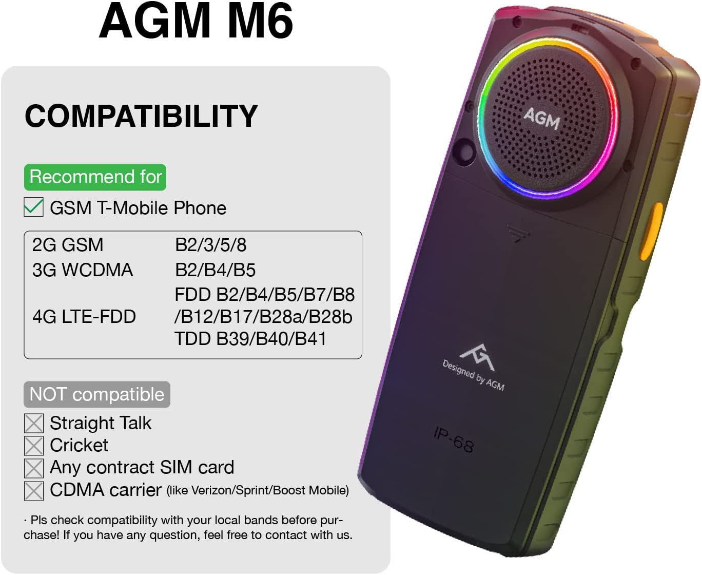 AGM M6 4G Rugged Phone Unlocked Phone Cell Phone for Seniors & Kids, Dual SIM IP68/IP69K Waterproof Phone, MIL-STD-810H, T-Mobile, 2.4" Screen 48MB+128MB 2500mAh Battery Black, Big Font, Big Speaker