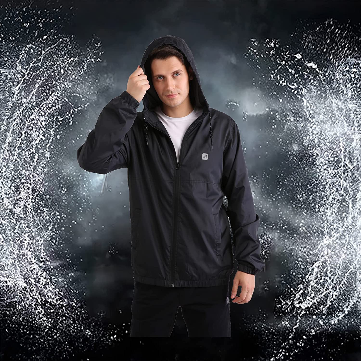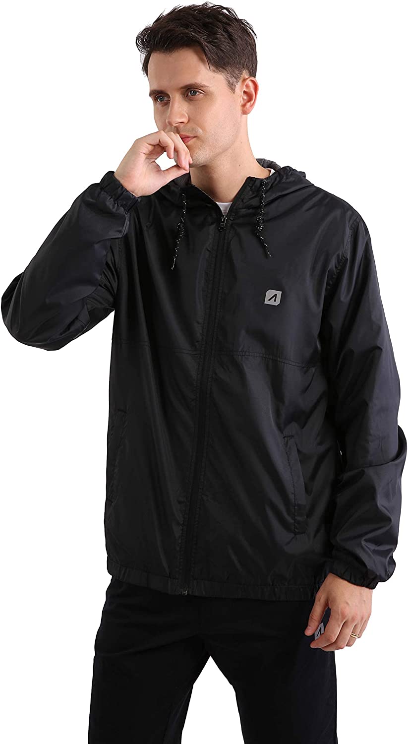 ARECON Men’s Windbreakers Waterproof Windproof Lightweight Jacket for Hoodie Full Zip Breathable Outdoor Running Rain Coat