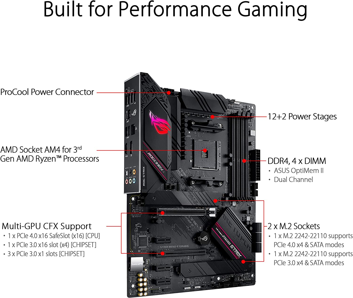 Experience next-level performance and connectivity with the ASUS ROG Strix B550-F Gaming, featuring PCIe 4. 0 and 2. 5Gb Ethernet. Robust power and effective cooling make the ROG Strix B550-F Gaming the perfect partner for 3rd Gen AMD Ryzen CPUs. Futuristic aesthetics, intuitive software, and a reliable Stack Cool 3+ design put your build in the winner’s circle. Free 3-months Adobe Creative Cloud Subscription: Receive complimentary access with the purchase of this product (offer valid from 9/15/2021 to 9/15/2022) visit /public/picture123/20230409/mcm53vaf5kr76042 to claim.