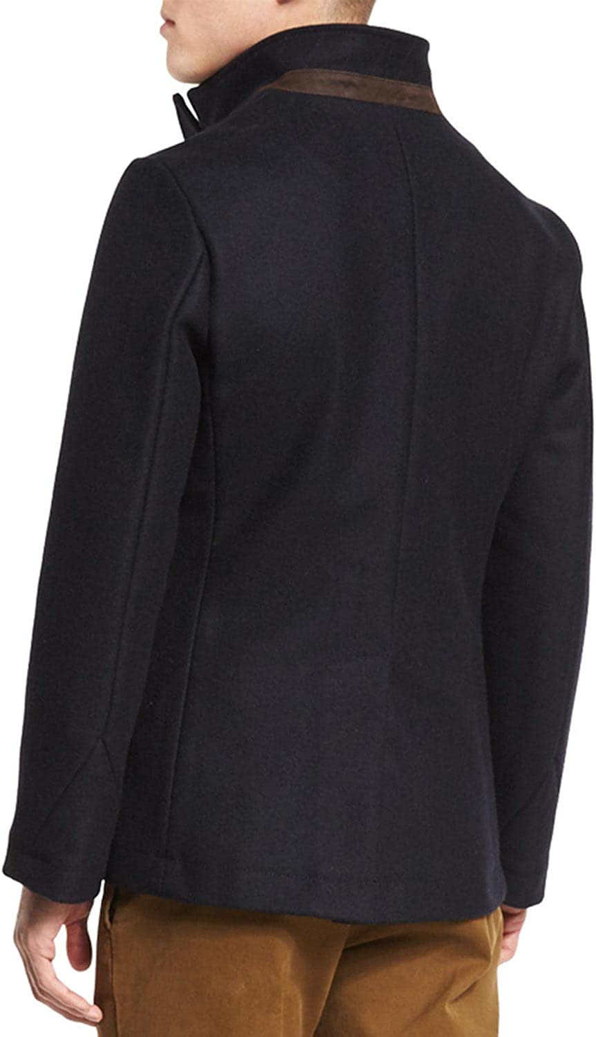 Billy Reid Men's Wool Double Breasted Bond Peacoat with Leather Details