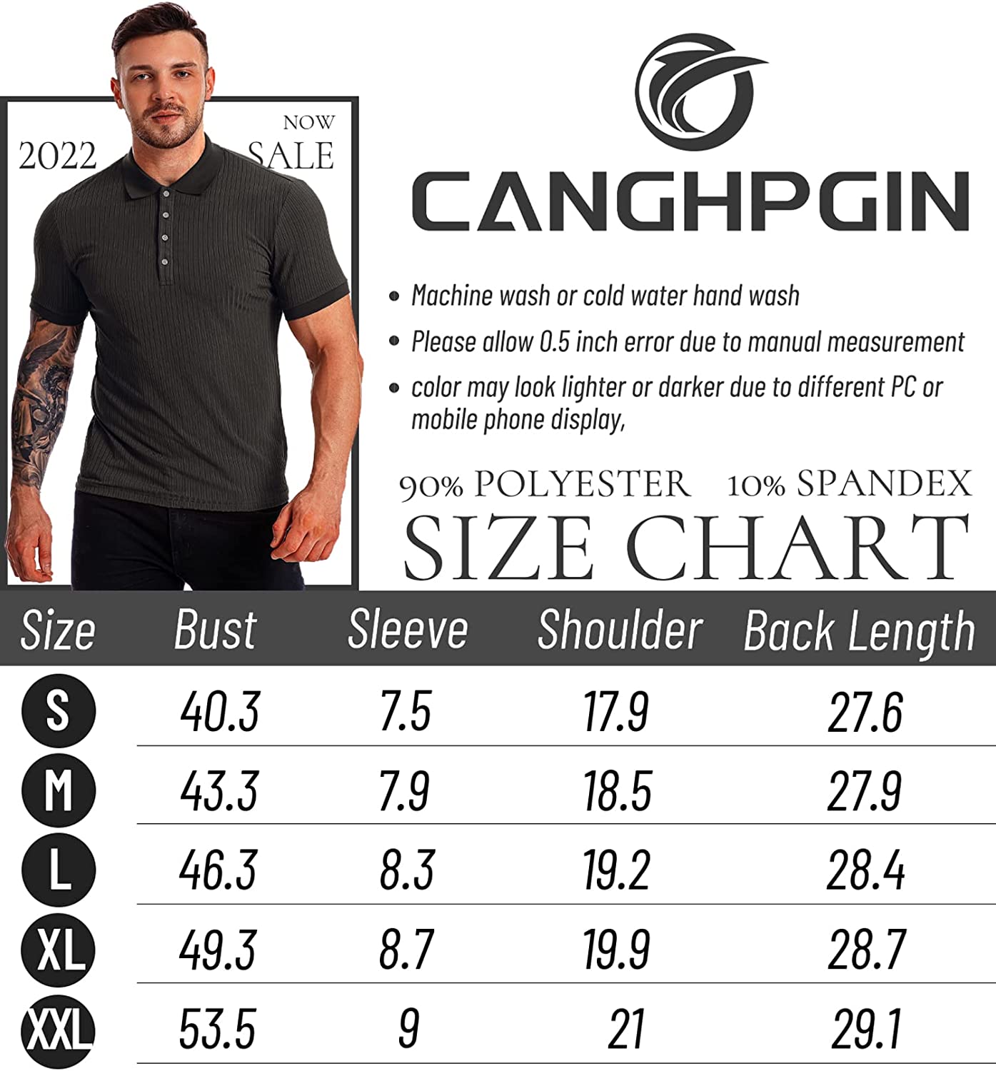 CANGHPGIN Muscle Polo Shirts for Men Short Sleeve Slim Fit Quick Dry T-Shirts for Golf Tennis Workout Casual