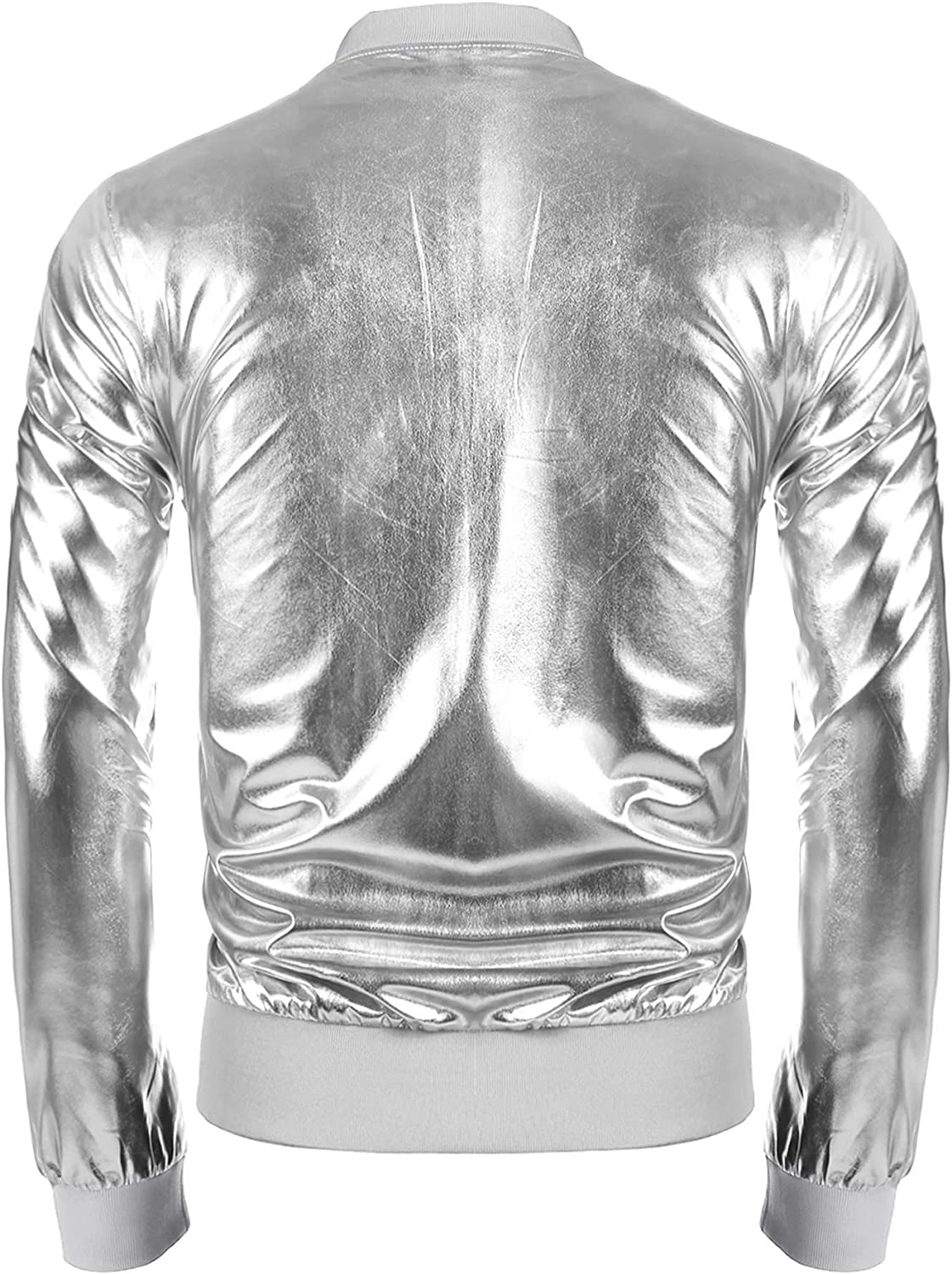 COOFANDY Men's Metallic Jacket 70s Disco Christmas Party Varsity Jacket Zip-up Baseball Bomber