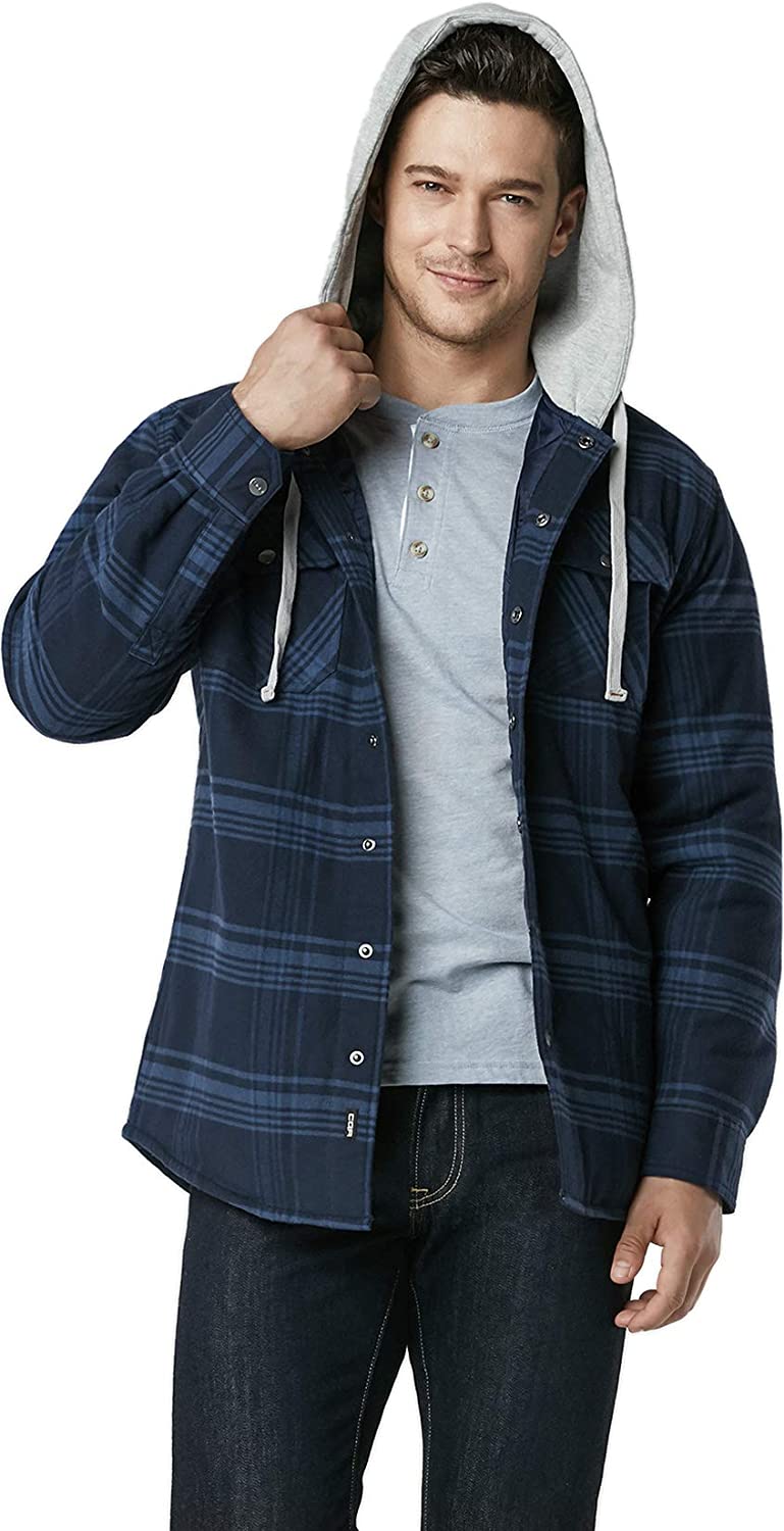 CQR Men's Hooded Quilted Lined Flannel Shirt Jacket, Long Sleeve Plaid Button Up Jackets