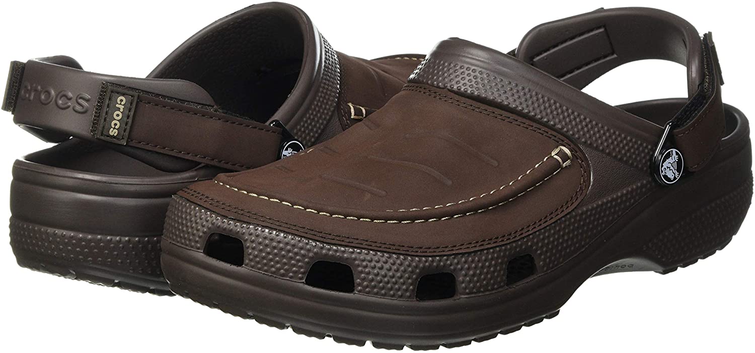 Faux leather uppers and adjustable heel straps add a dose of ruggedness to the Men’s Classic Yukon Vista II Clogs. With a hook-and-loop closure system that also pivots forward, you’re free to choose between a hands-free slide or secured fit. Croslite foam outsoles and the superbly cushioned LiteRide footbeds can handle the outdoor elements while providing true comfort around the campfire, on the trail, or back home.