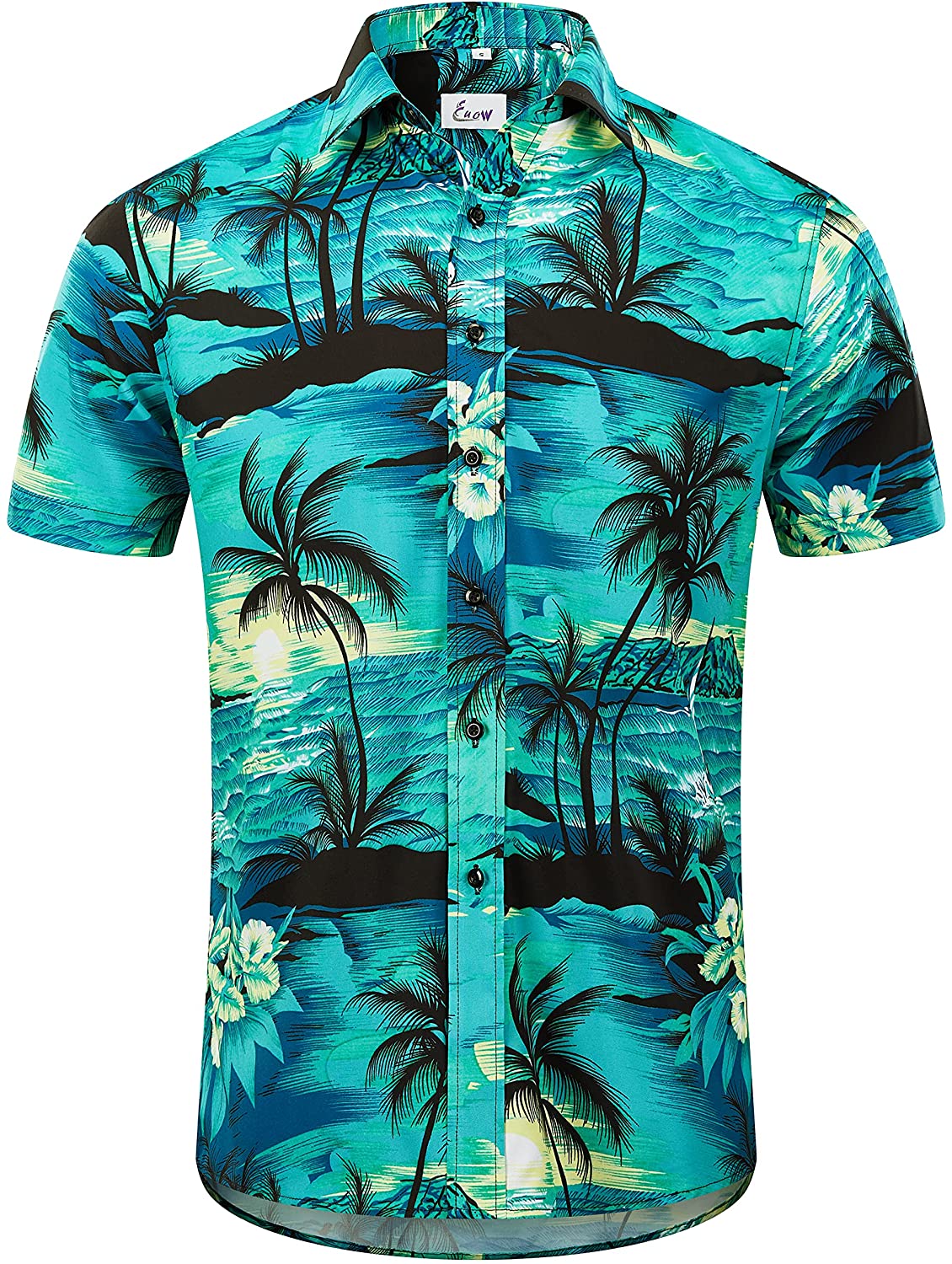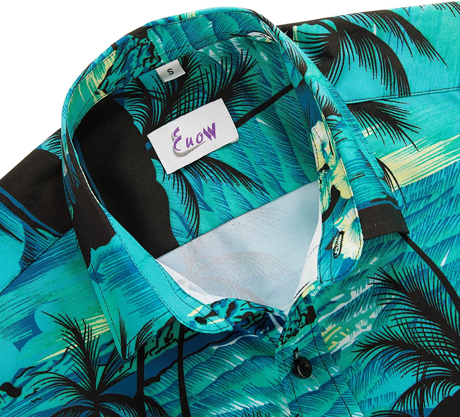 EUOW Men's Hawaiian Shirt Short Sleeves Printed Button Down Summer Beach Dress Shirts