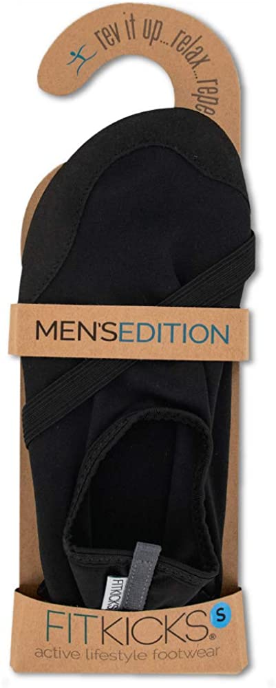 FITKICKS offer full movement potential with a unique minimalist design and ergonomic fit. Durable FlexForm sole naturally contours to your foot for free range of motion and fold and go transport. Four sizes and perfect patterns for comfortable style: Battle Royale (blue camo), High Frequency (black & white). FITKICKS are your kick-around companions! Mens sizes available: S=7-8, M=8.5-9.5, L=10-11, XL=11.5-12.5