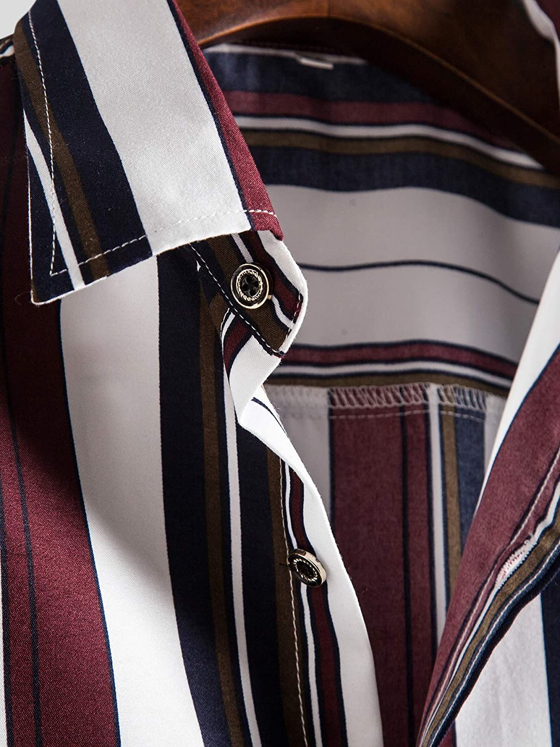 Floerns Men's Striped Shirts Casual Short Sleeve Button Down Shirts