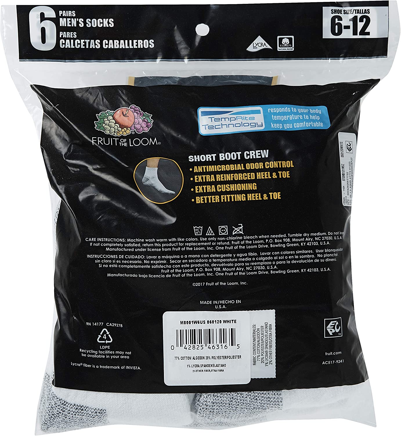 Fruit of the Loom mens Cushioned Durable Cotton Work Gear With Moisture Wicking Casual Sock, White, One Size US
