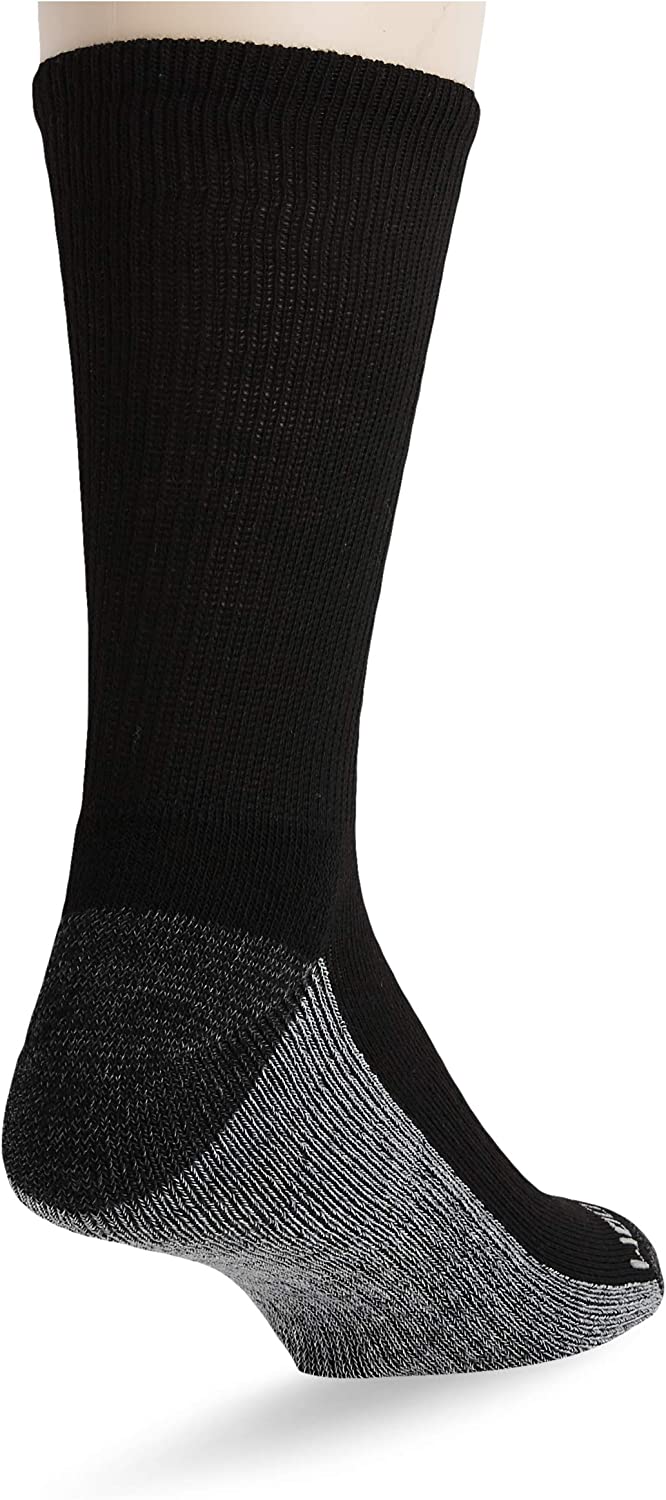 Fruit of the Loom socks are comfortable, affordable, and built to last. These men's crew socks feature arch support, a durable gray cushioned sole, and spandex throughout. The black silhouette features stays black fabrication. 6 pairs per package. Fits men's shoe size 6-12.
