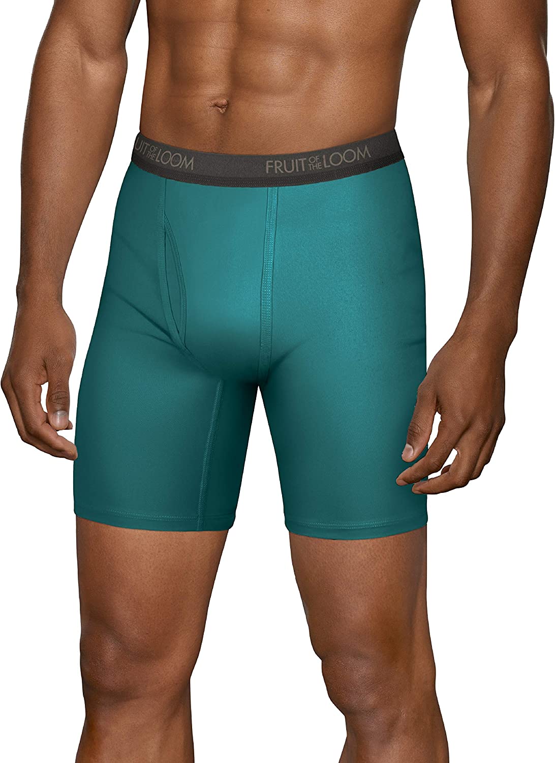 Take your underwear to the next level with Fruit of the Loom Big Men's Micro-Stretch Boxer Briefs. These lightweight microfiber boxer briefs are the perfect upgrade to your every day underwear. Our micro-stretch boxer briefs are designed with a polyester/spandex fabric that stretches to move with you throughout the day. Their lightweight construction, paired with moisture wicking, will help you stay cool and dry in any occasion. They are designed with longer legs to provide additional coverage. The tapered legs provide less bulk and won't ride up. These boxer briefs feature a woven, tag free waistband for extra comfort.