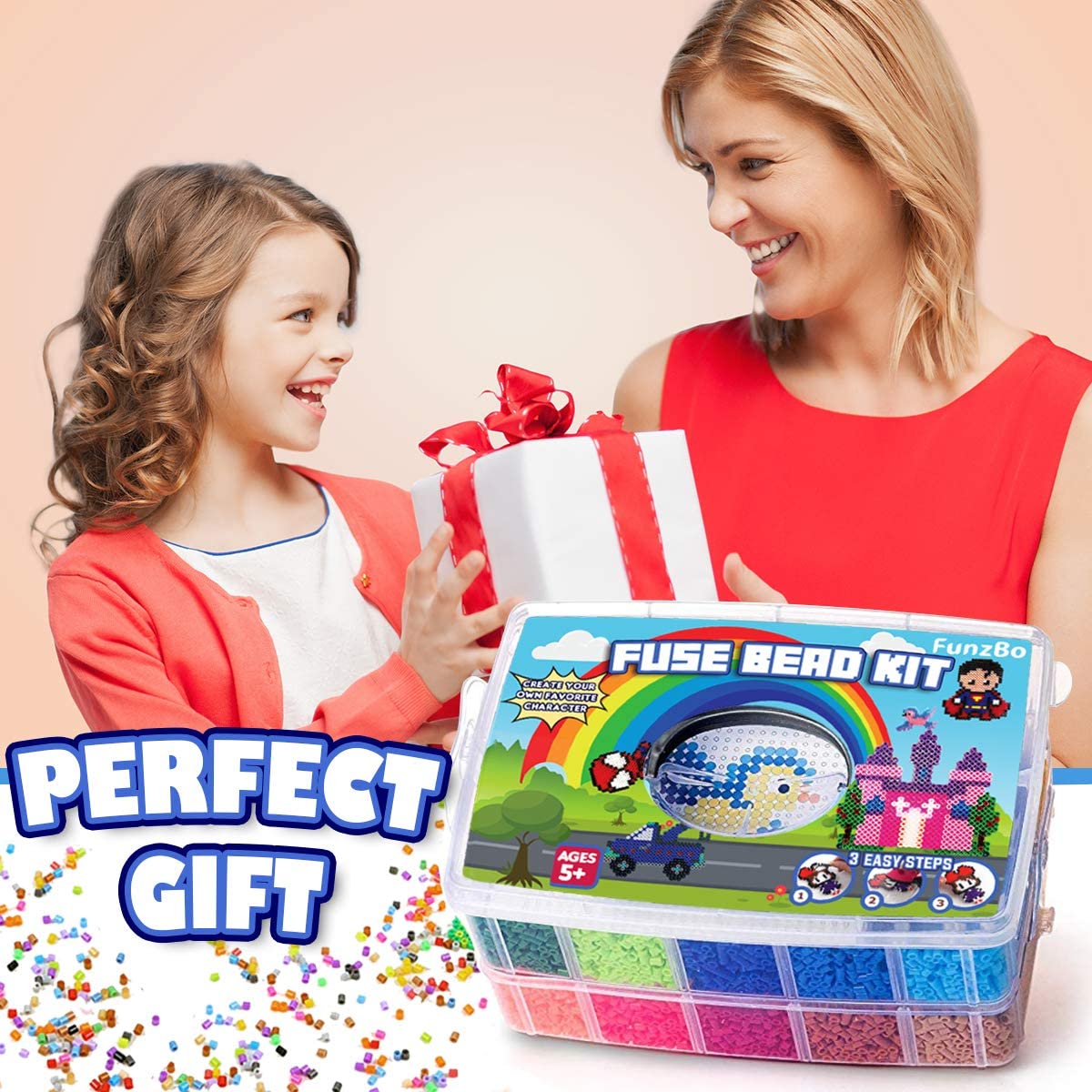 FunzBo Fuse Beads for Kids Craft Art - 106 Patterns Fusebead Melty Fusion Colored Arts and Crafts Set for Boys Girls Age 4 5 6 7 8 Year Old Classroom (Mega)