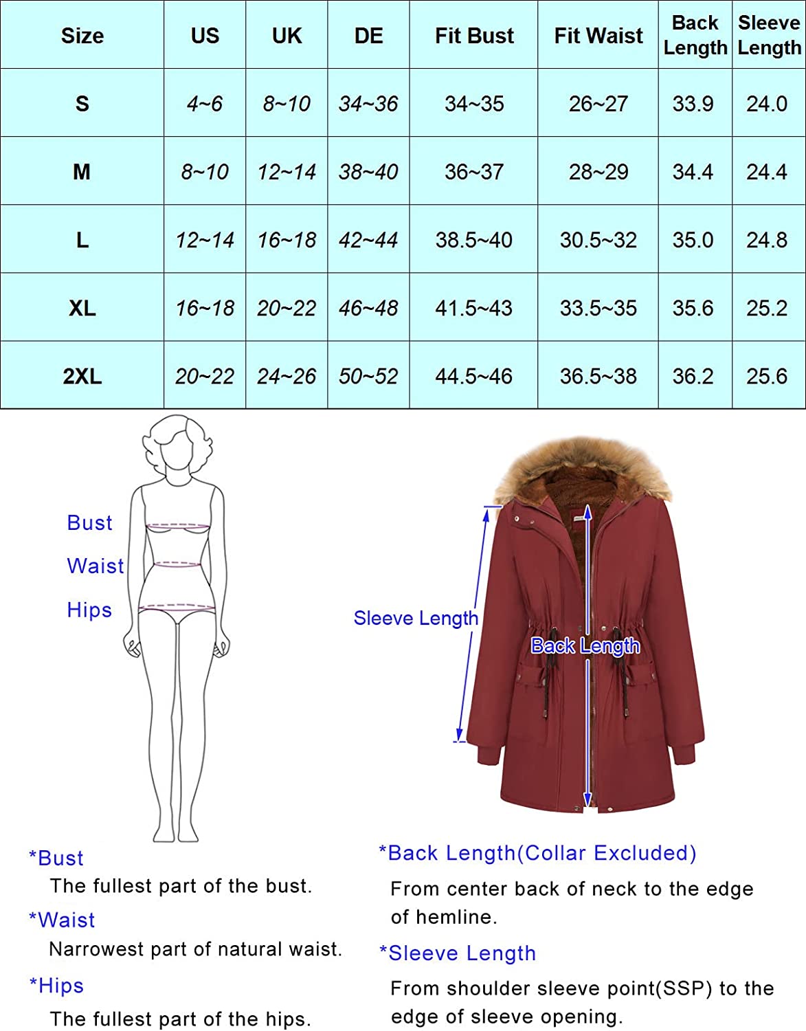 GRACE KRAIN Womens Hooded Winter Coats Long Warm Fleece Lined Jacket Parka with Pockets Waterproof Windproof