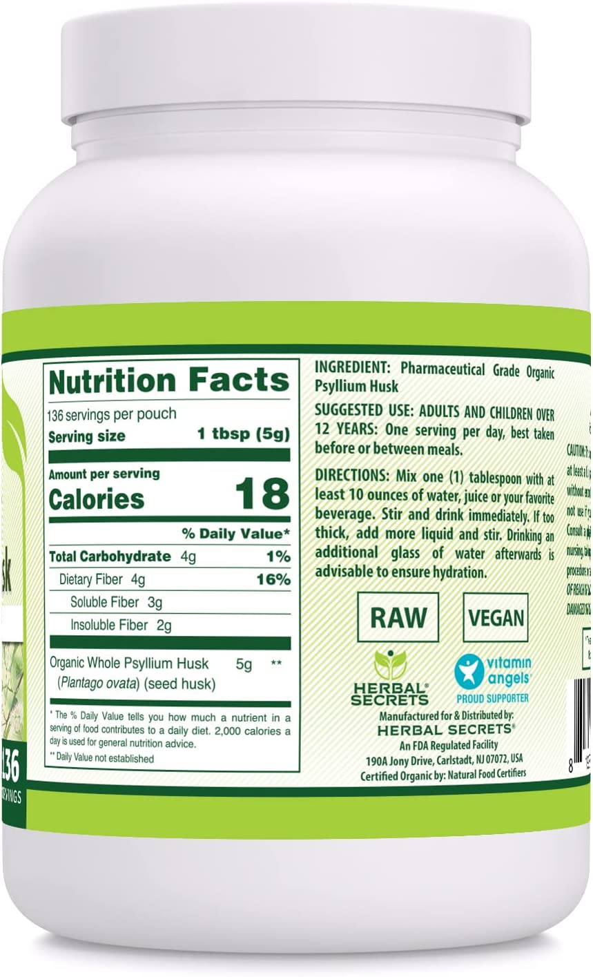 Herbal Secrets Psyllium Husk 24 Oz | Vegan, Dairy Free, (Non-GMO), Gluten Free, no Sugar