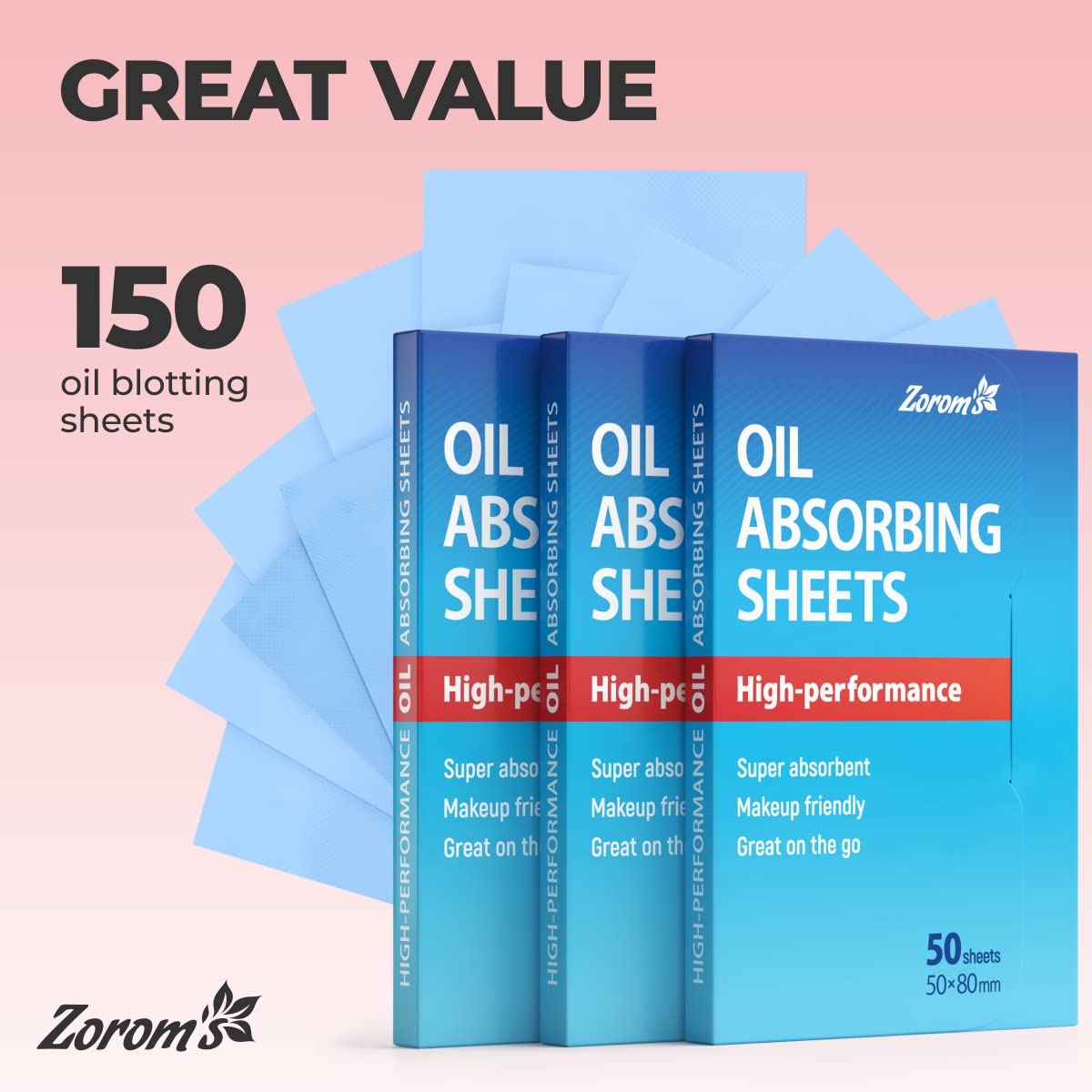 High-Performance Oil Blotting Sheets for Face - 3 pack (150 sheets) - Makeup Friendly Blotting Paper for Oily Skin