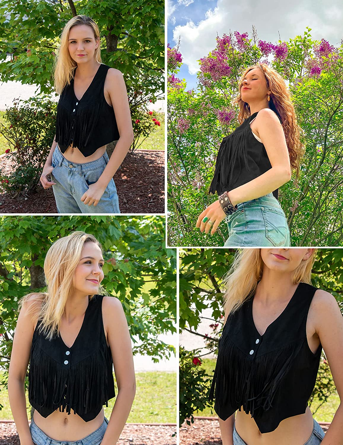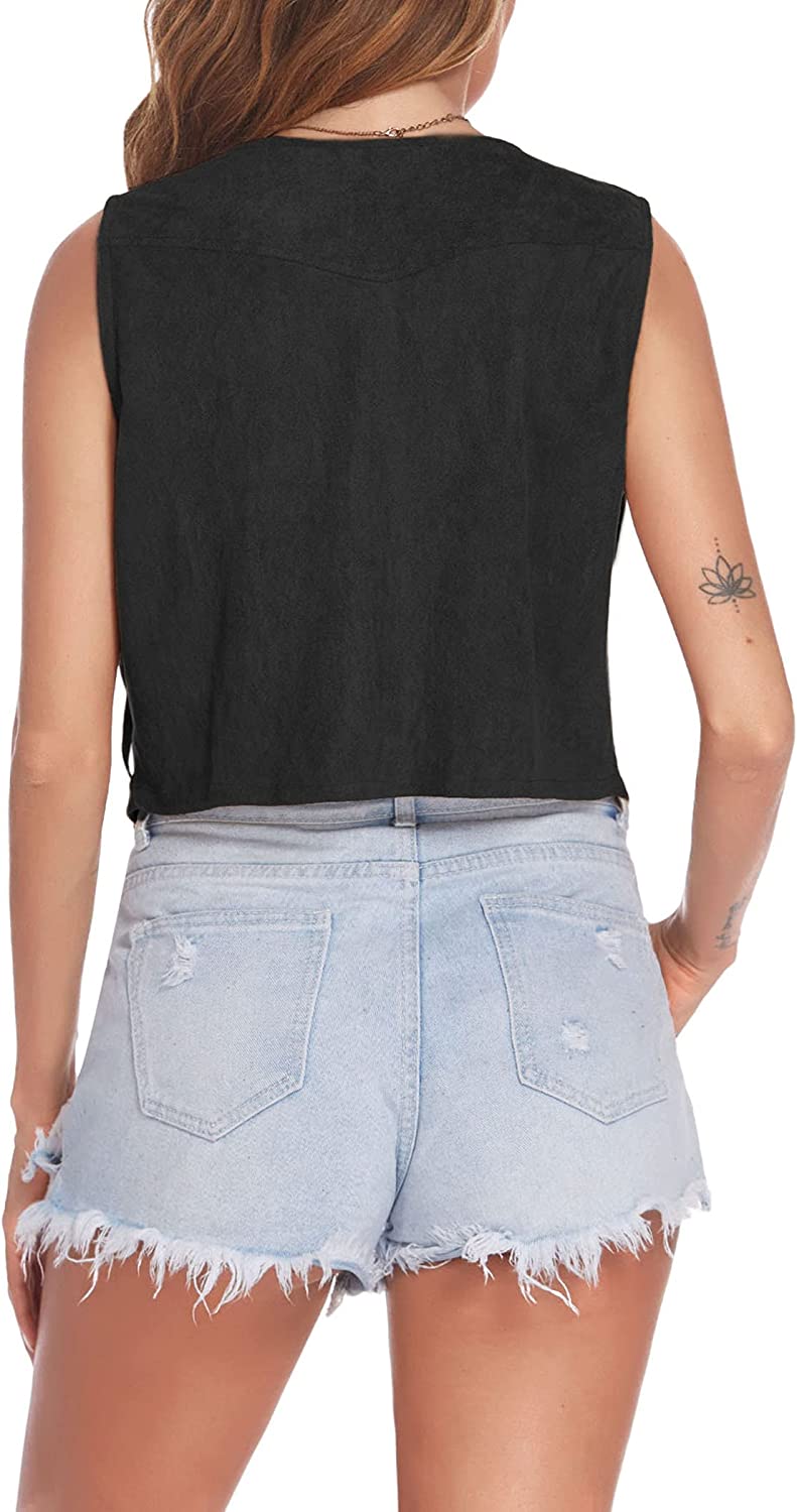 Hotouch Fringe Vest Women Faux Suede Open-Front Vintage Vest Sleeveless 70s Hippie Clothes Boho Western Jacket