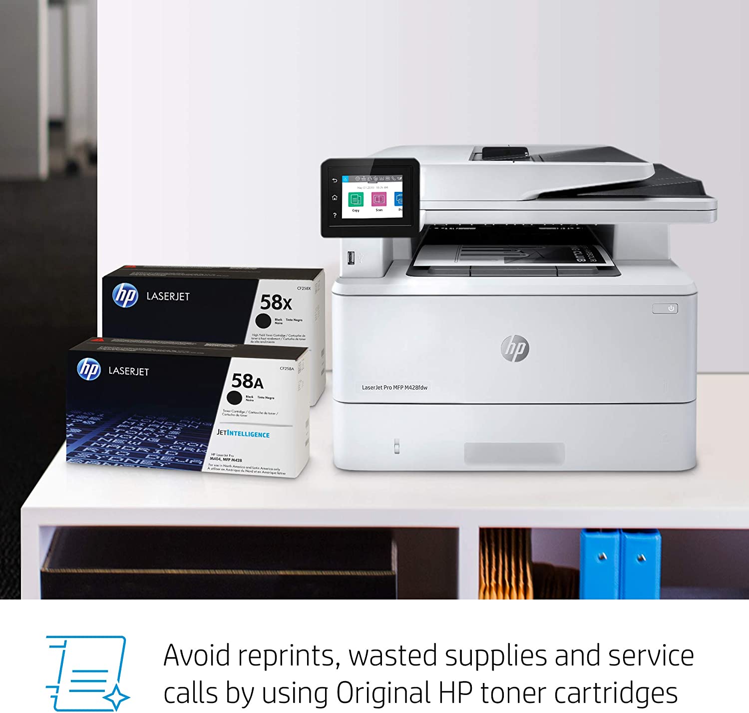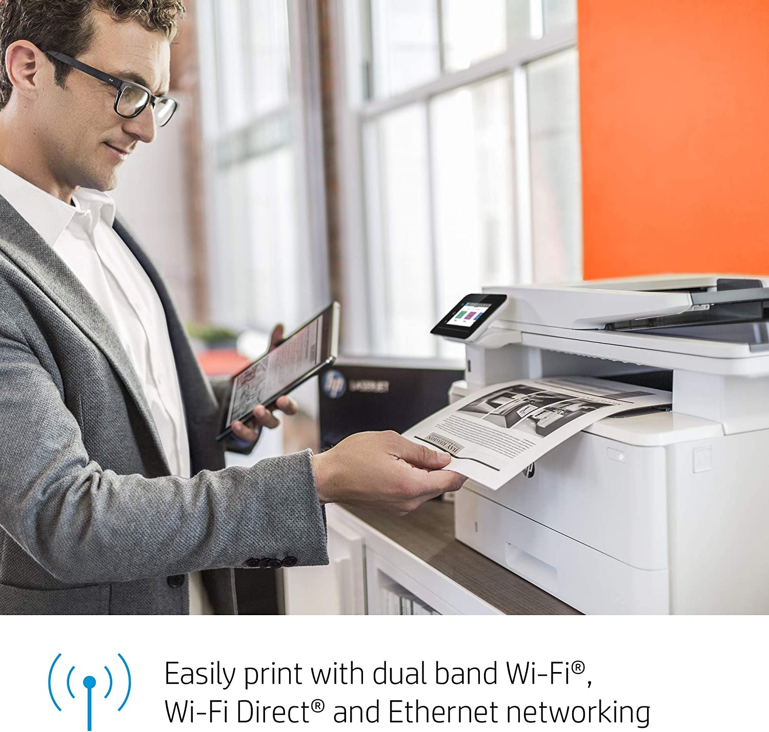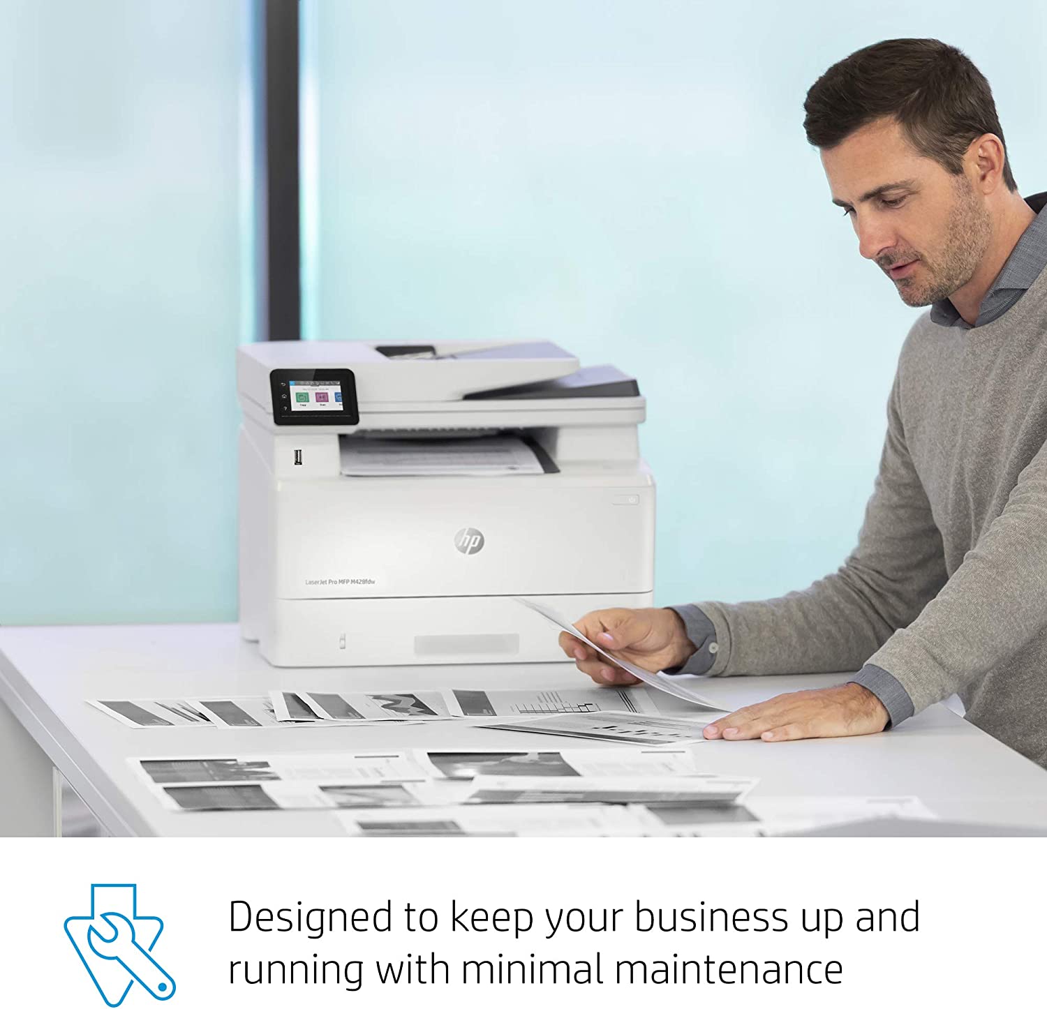 It's built to keep your business moving forward, the HP LaserJet Pro Multifunction Printer M428fdw keeps up with how you actually work, collaborate, and get things done. With fast print, scan, copy, and fax capabilities, best-in class security, and automated workflows, this multifunction monochrome laser printer is designed to let you focus your time on growing your business and staying ahead of the competition. Maximize productivity with an intuitive touchscreen control panel and automatic 2-sided printing, and stay connected with easy mobile printing options. This wireless laser printer is also designed with the environment in mind; save up to 22% over prior products with HP Eco Smart black toner, and help save paper right out of the box with the default paper savings mode.