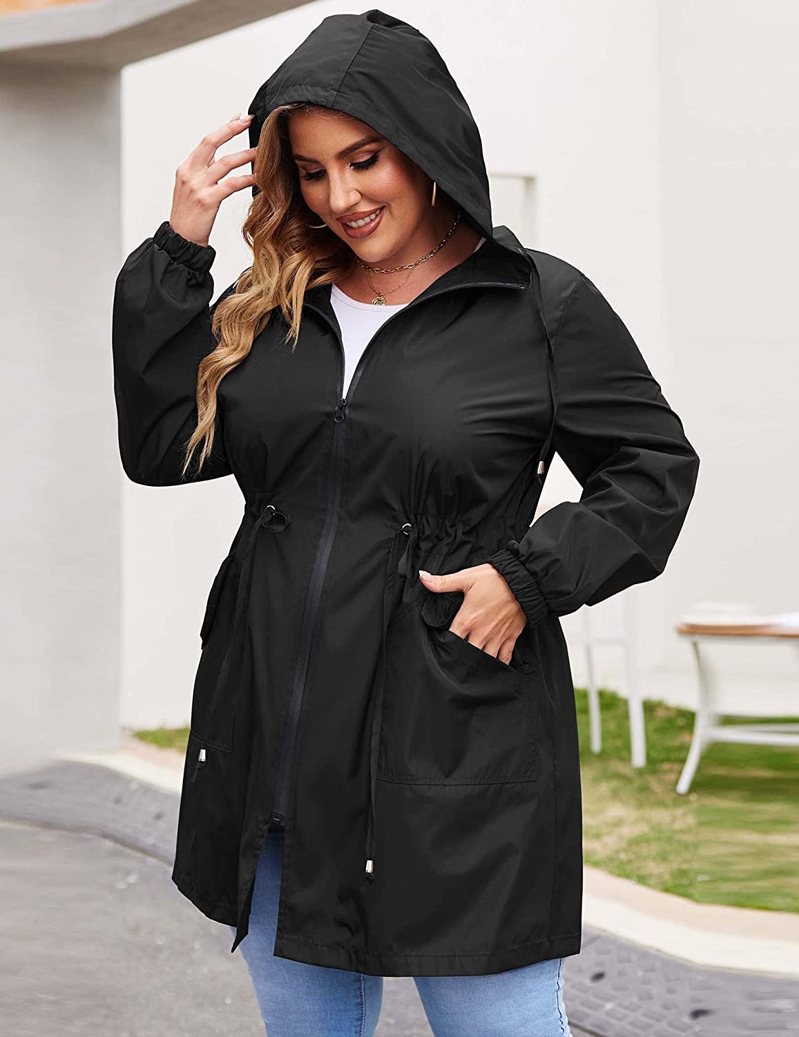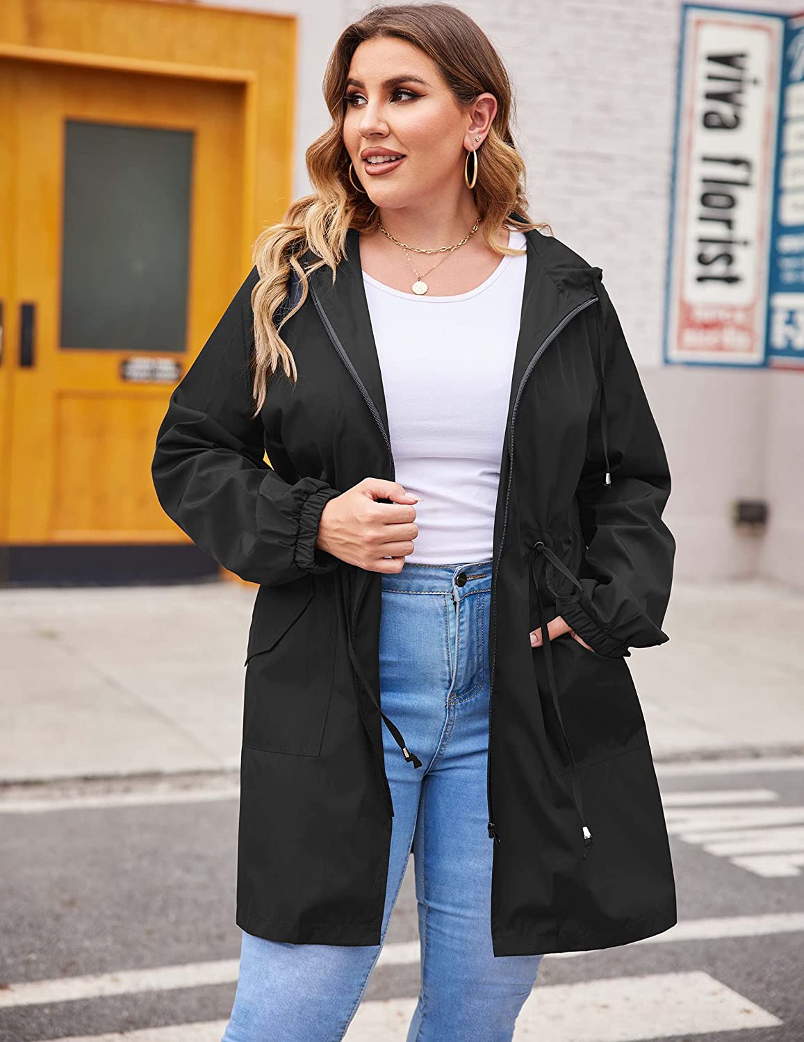 IN'VOLAND Women's Rain Jacket Plus Size Long Raincoat Lightweight Hooded Windbreaker Waterproof Jackets with Pockets
