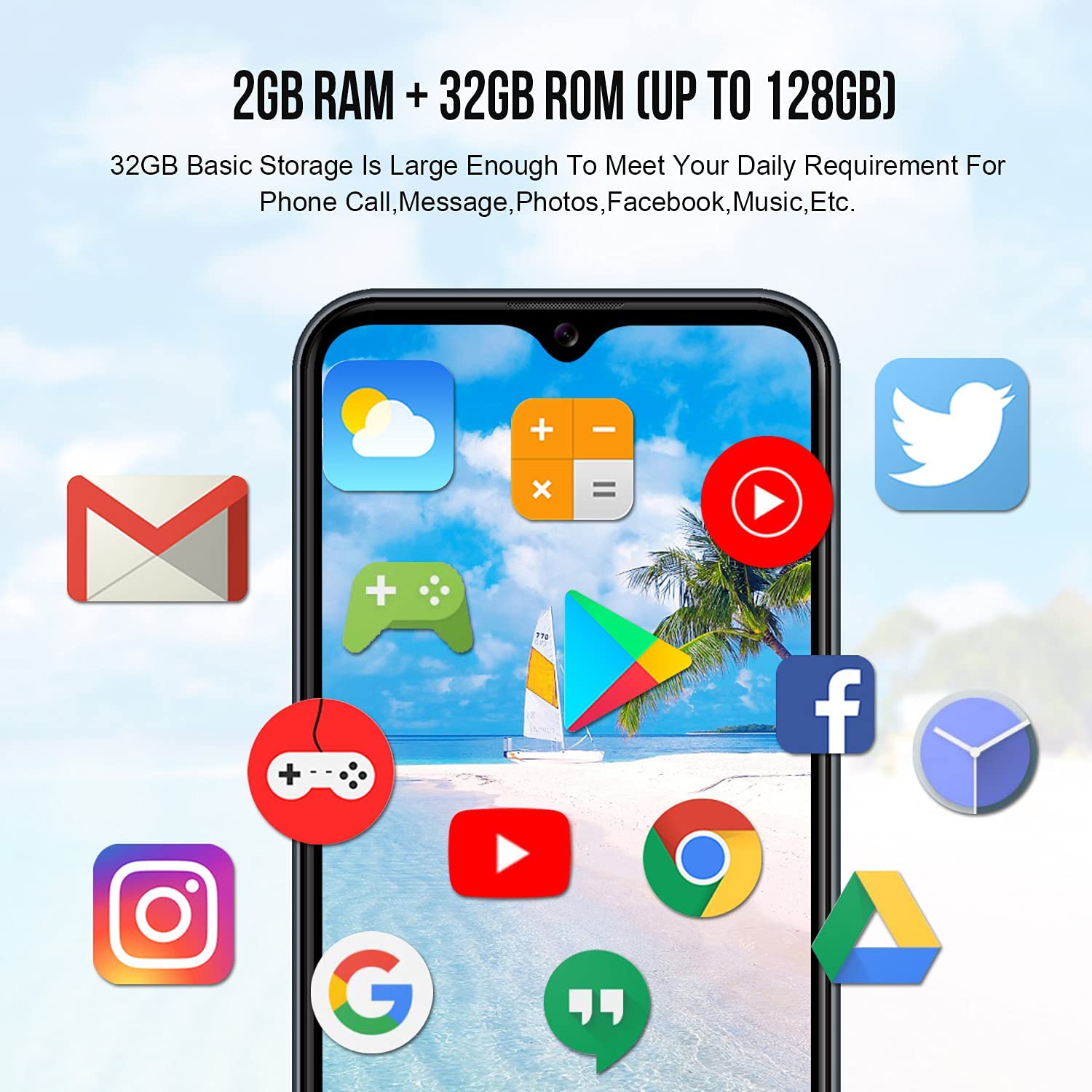 KXD D68S Smartphone Unlocked | 4000mAh Battery | 6.088” Full-Screen Display | 32GB (128GB Extended) | 8MP Dual Camera | Dual SIM Card Cell Phone | Black