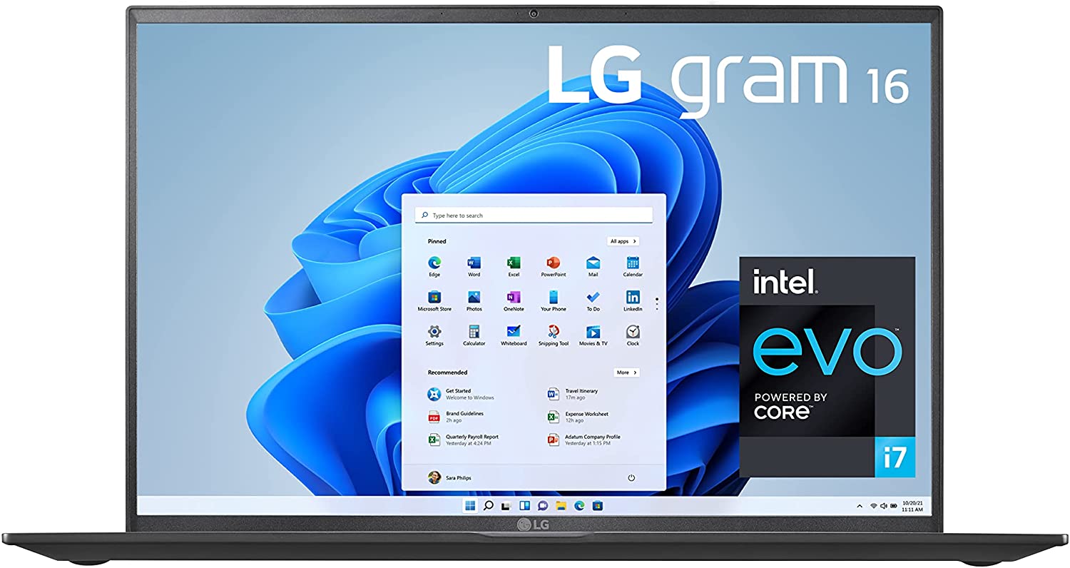 The 16Z90P series LG gram laptop with 16” IPS display combines consummate portability and uncompromising performance with virtually all-day battery life*. The compact body is both lightweight and durable, while its 11th Generation Intel Core i7 CPU With Iris Xe Graphics 16GB of DDR4 RAM assure blazing speed. This LG gram hosts 256GB NVMe solid state drive while Thunderbolt 4 connectivity offers faster data transfer as well as smoother display of 4K/5K video. With Windows 11 Home operating system. *MobileMark 2014 standard (MobileMark is a trademark of the Business Applications Performance Corporation). Performance level is utilized for comparison purposes only, and does not necessarily reflect the battery life that will be achieved. Actual battery life will vary from specifications depending on model, setup configuration, applications used, features utilized and power management settings.