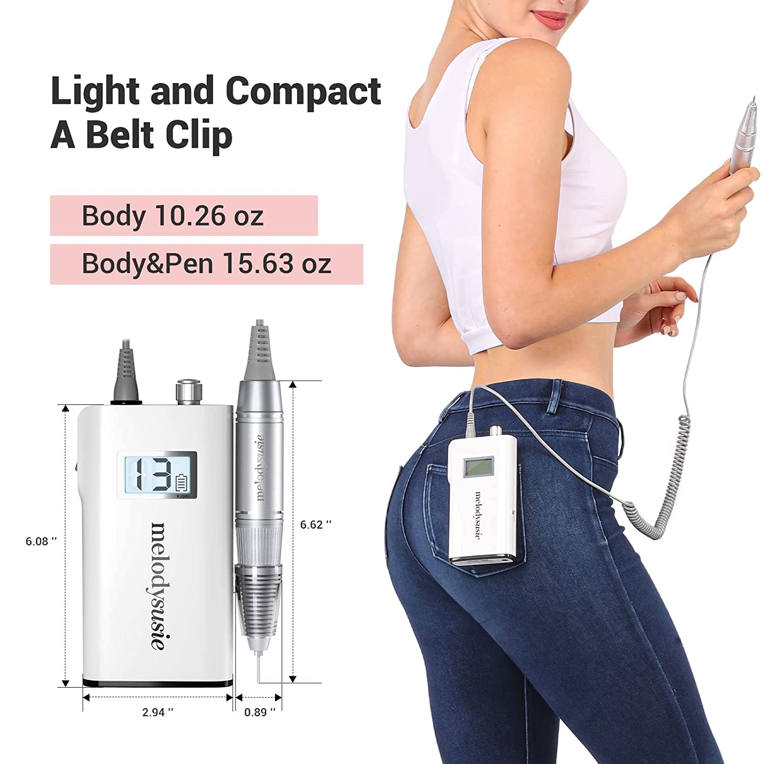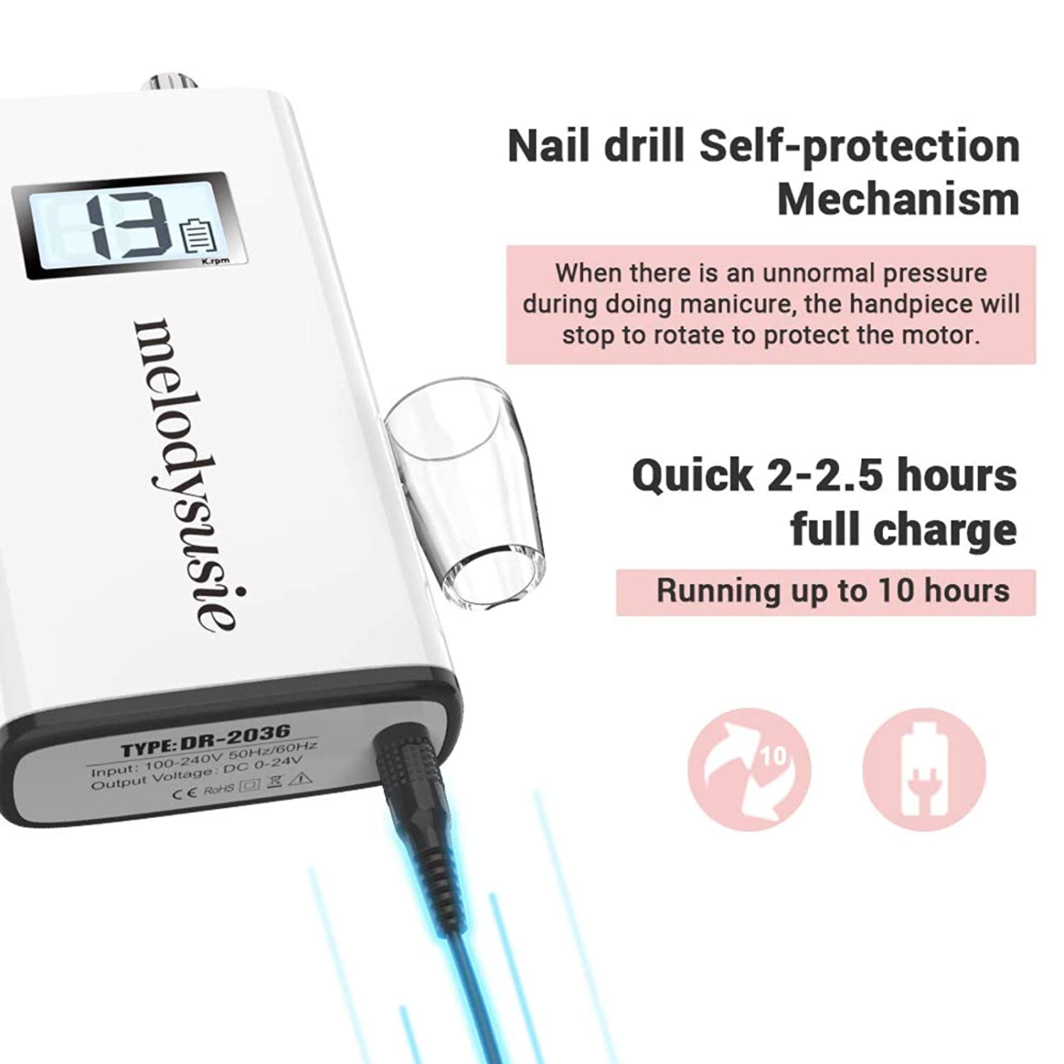MelodySusie Professional Rechargeable 30000 rpm Nail Drill, Portable Electric E File Scamander, Acrylic Gel Grinder Tools with 6 Bits and Sanding Bands for Manicure Pedicure Shape Carve Polish (White)