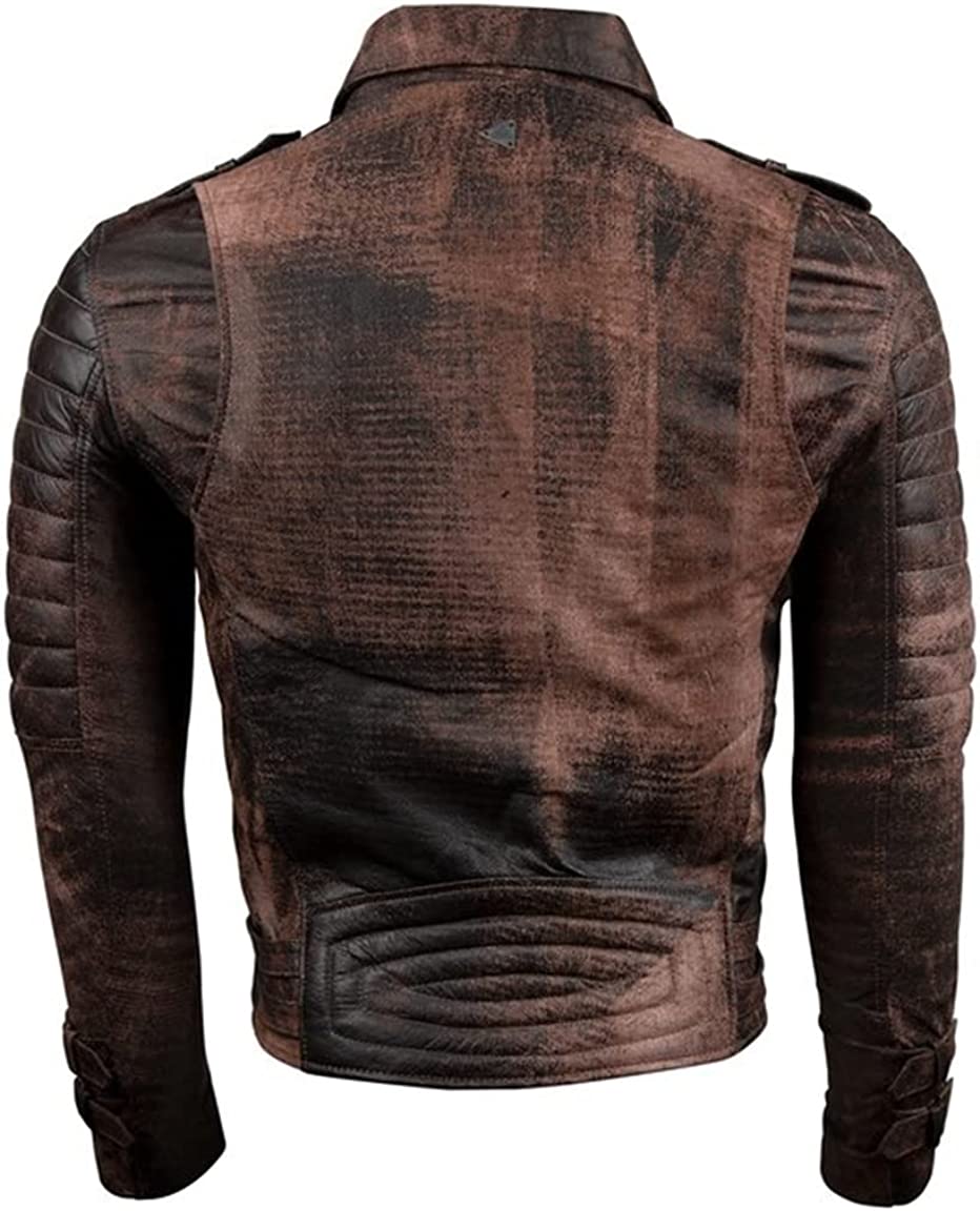 Mens Distressed Motorcycle Leather Jacket | Brown Riding Lambskin Aesthetic Jacket | Vinatge Belted Leather Jacket For Men
