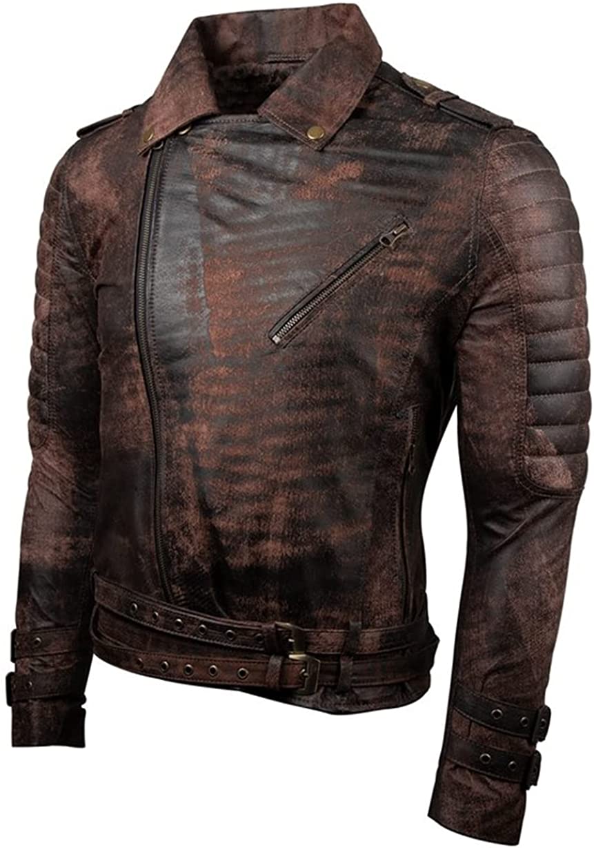 Mens Distressed Motorcycle Leather Jacket | Brown Riding Lambskin Aesthetic Jacket | Vinatge Belted Leather Jacket For Men