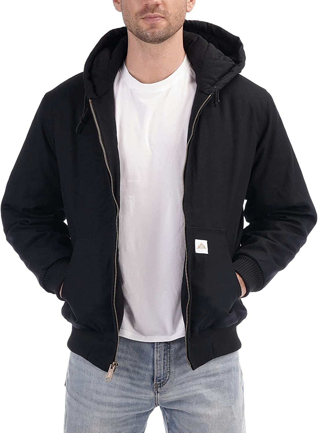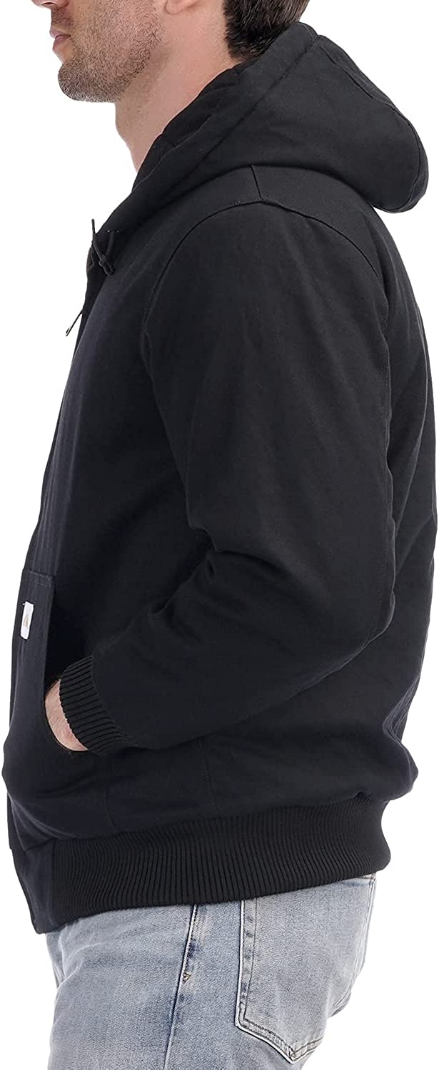 Men's Quilted Flannel Lined Active Jacket Waterproof Cotton Duck Hooded Workwear Winter Coat