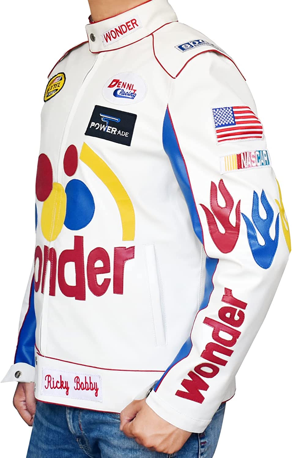 Men's Ricky Bobby Racing Nights Wonder The Bread Fast Speed Faux Leather Motorcycle Jacket