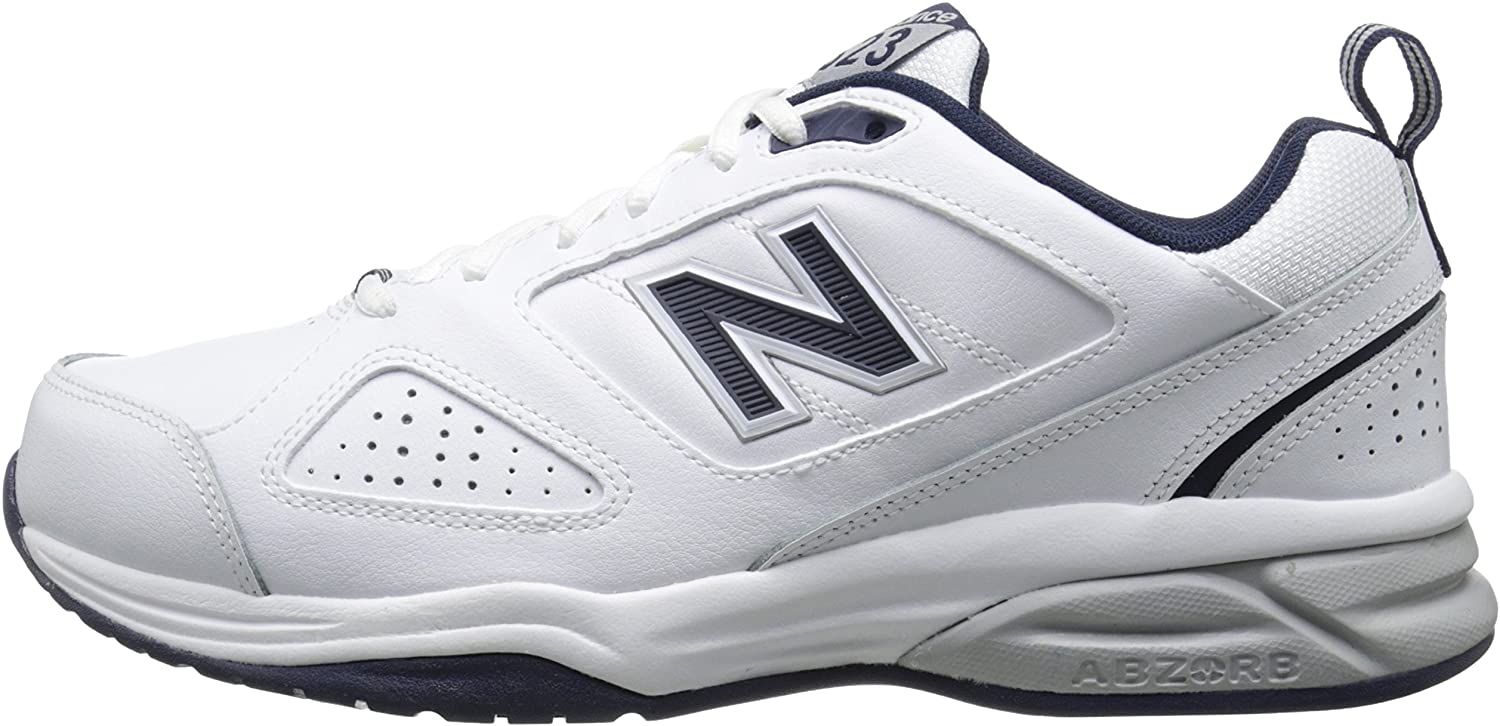 Step up to next-level comfort with the 623v3 Training Shoes from New Balance. These cushioned shoes keep active feet happy with an impressive blend of supportive technology and athletic style. ABZORB cushioning in the midsole of these comfortable training shoes keeps you moving forward by helping to prevent the discomfort and damage of daily impacts with a combination of cushioning and compression resistance. An EVA foam footbed and lightweight injection-molded EVA foam midsole provide firm yet flexible cushioning for a soft and supportive underfoot feel. Reinforced collar foam offers additional comfort that’s suitable for all-day wear. To help keep your workouts on steady ground, these trainers are constructed with an internal midsole shank designed to add midfoot structure and support with every step. Work out with confidence on indoor surfaces, thanks to the non-marking outsole on this versatile performance shoe. Or, take your show on the road knowing the water-resistant leather uppers of these trainers have you covered even when the weather isn’t cooperating. Built for style as well as substance, these New Balance training shoes stand out with an athletic-looking upper, classic New Balance branding and a secure lace-up closure.