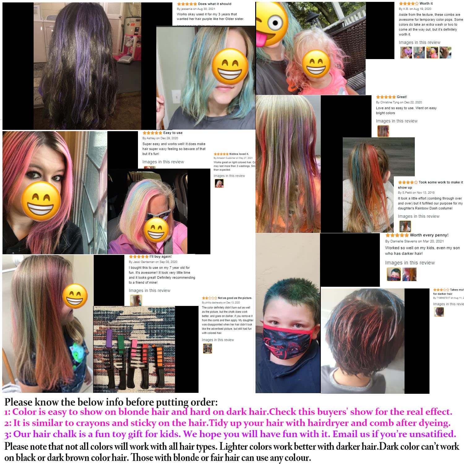 New Hair Chalk Comb Temporary Hair Color Dye for Girls Kids, Washable Hair Chalk for Girls Age 4 5 6 7 8 9 10 Birthday Party Cosplay DIY, Children's Day, 6 Colors
