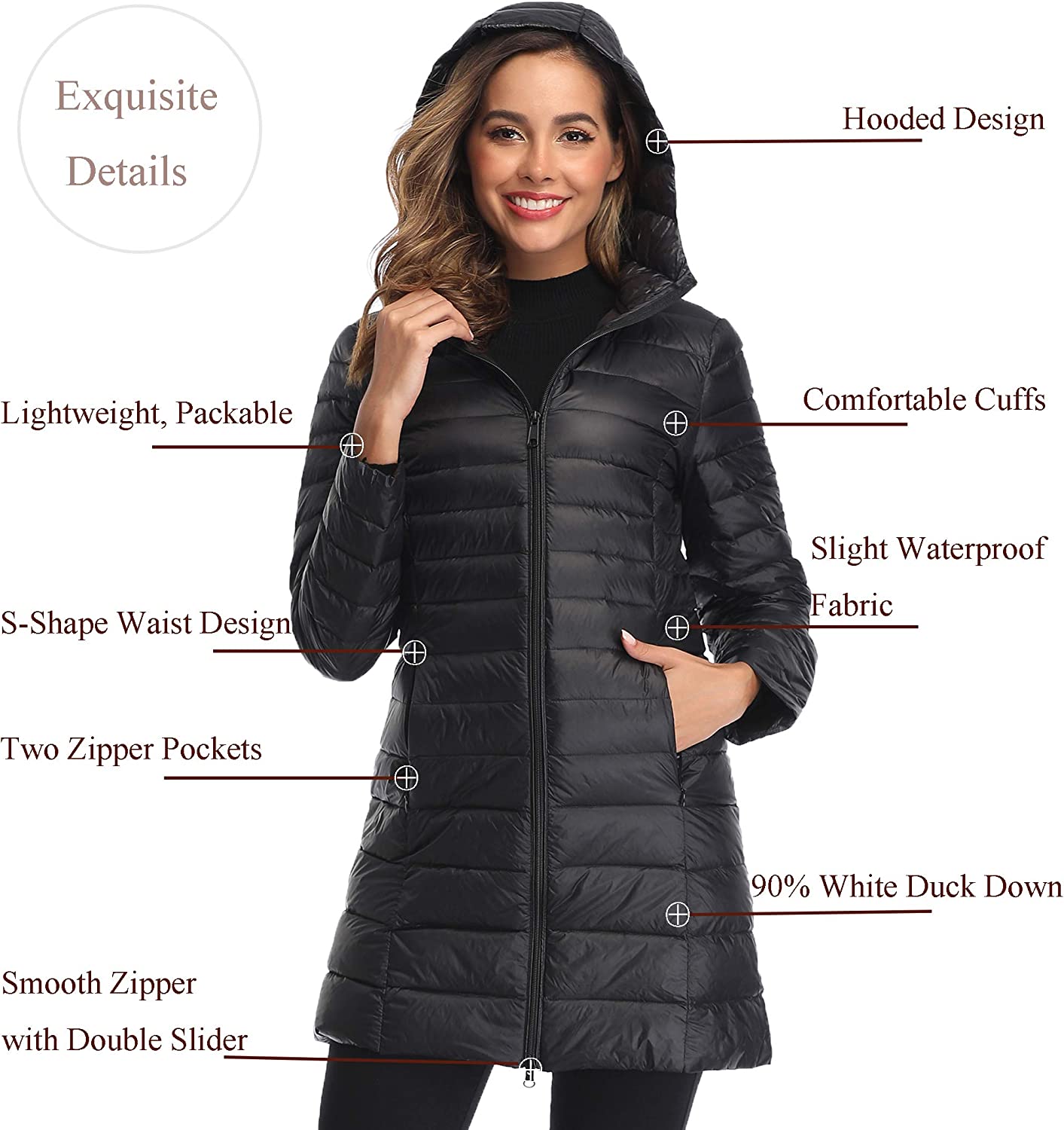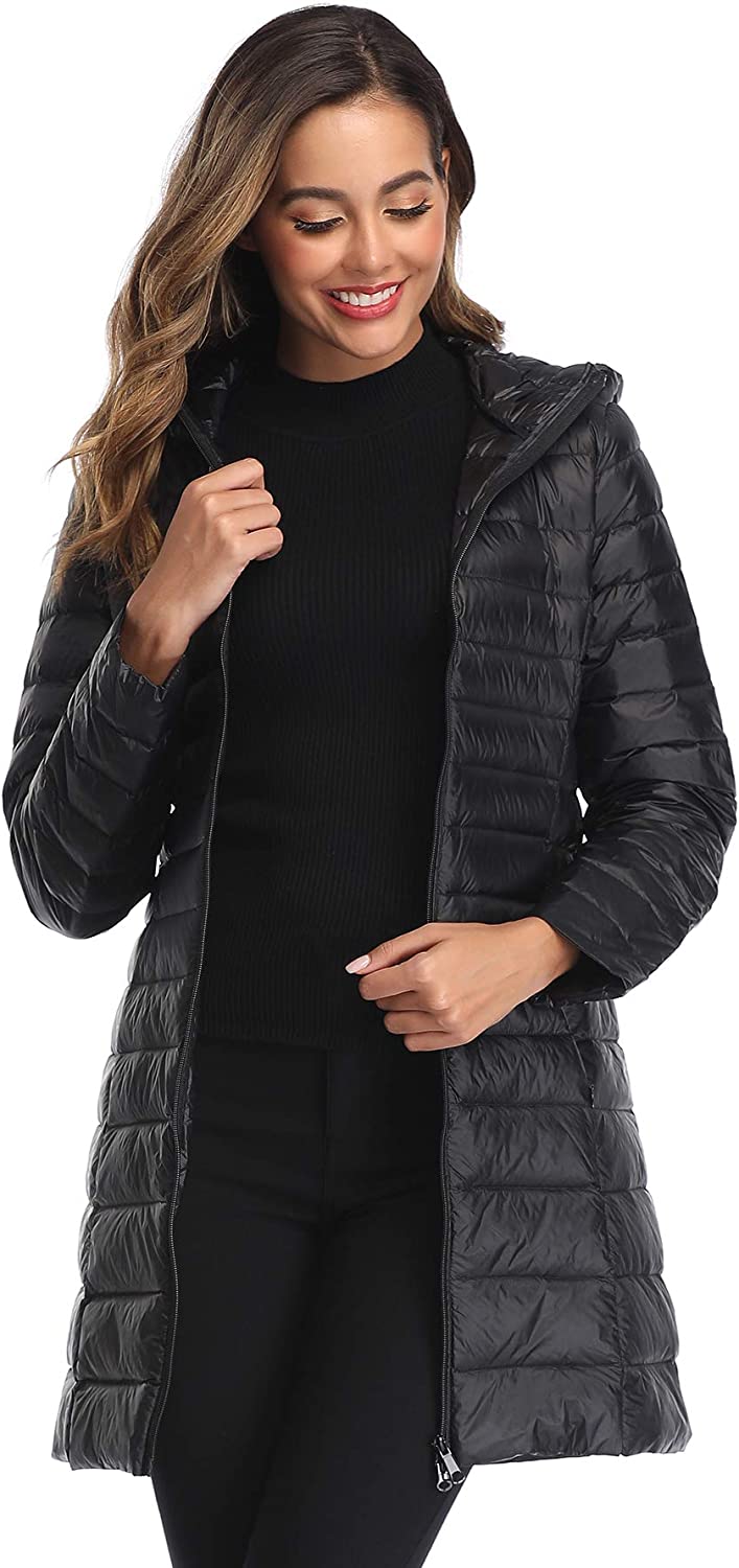 Obosoyo Women's Winter Packable Down Jacket Plus Size Ultralight Long Down Outerwear Puffer Jacket Hooded Coat