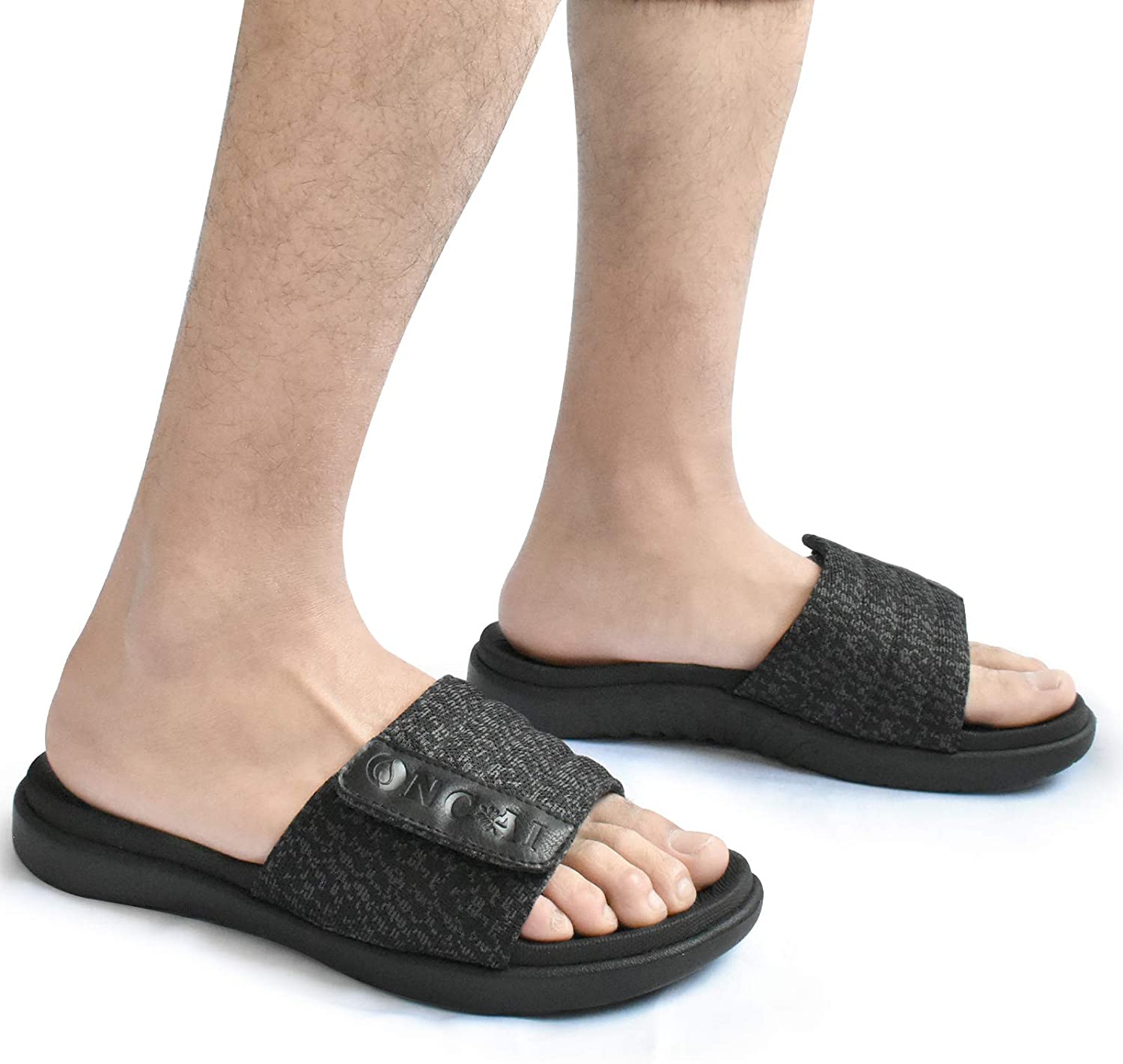 ONCAI Mens Slide Sandals Open Toe Athletic Adjustable Straps Orthotic Plantar Fasciitis Sport Sandals with Soft Cushion Arch Support Footbed Size 7-13
