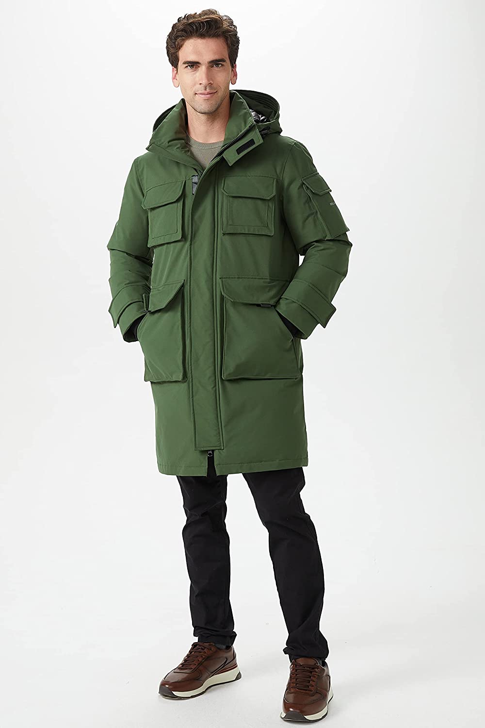 Orolay Men's Warm Hooded Parka Down Coat Thickened Winter Jacket with Multi-Pockets