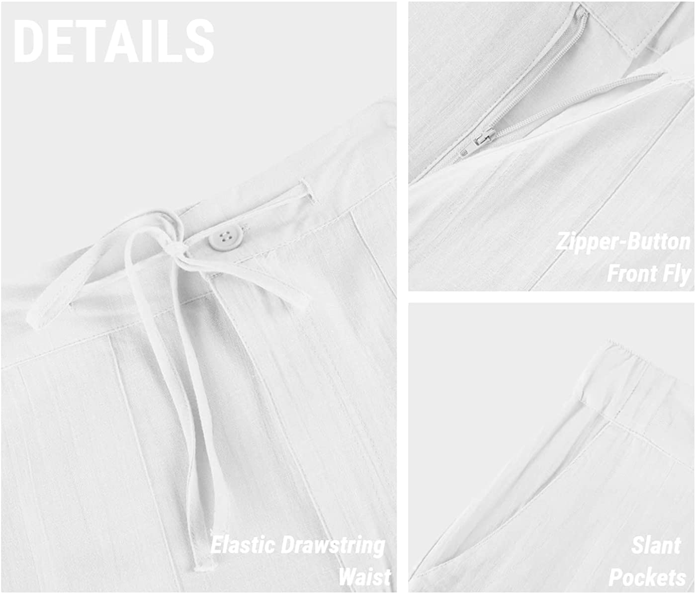PASLTER Mens Casual Linen Pants Loose Fit Straight-Legs Elastic Drawstring Waist Summer Beach Yoga Long Pants