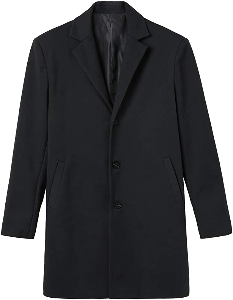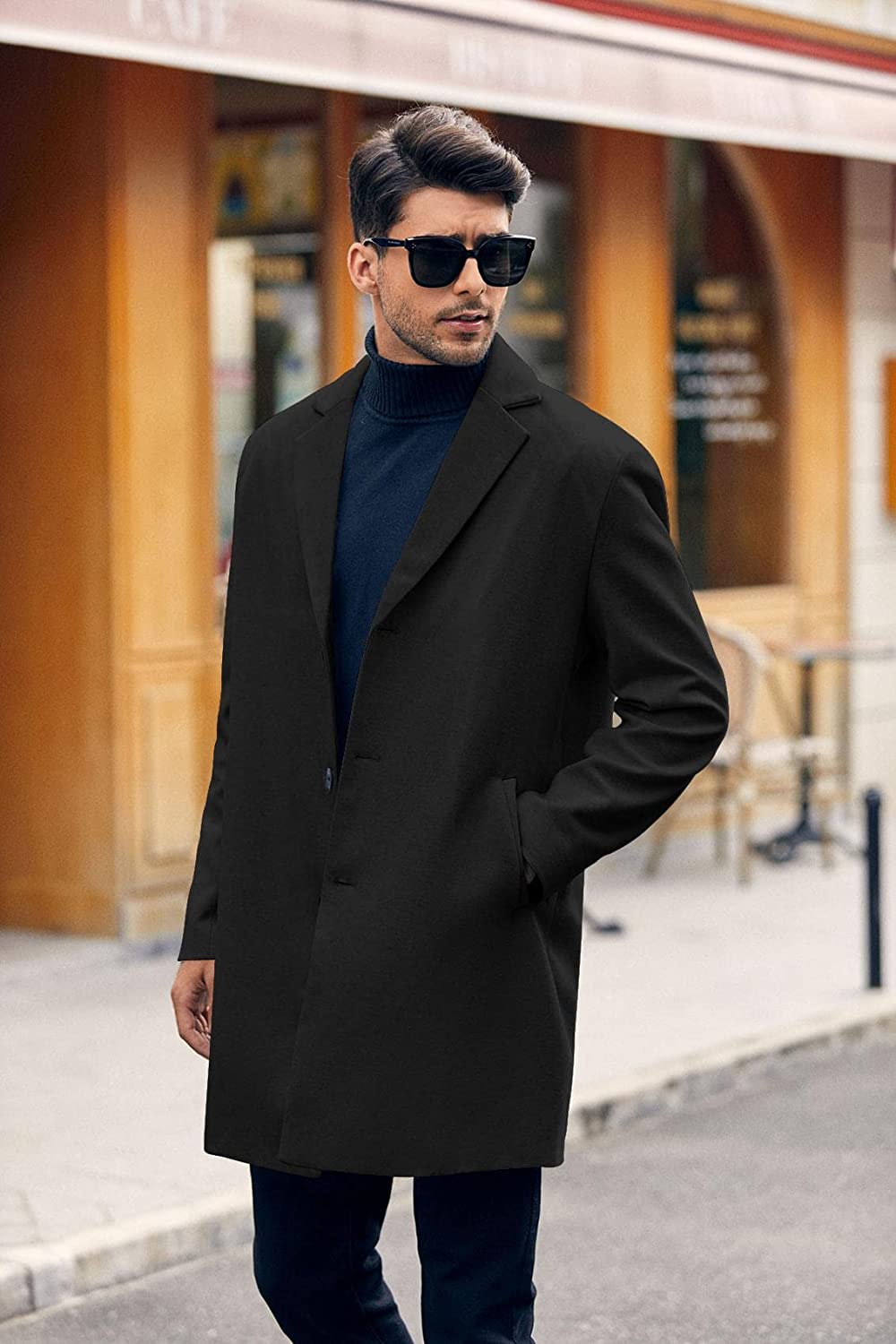 PASLTER Mens Trench Coat Slim Fit Notched Collar Fall Winter Single Breasted Pea Coat Warm Soft Overcoat