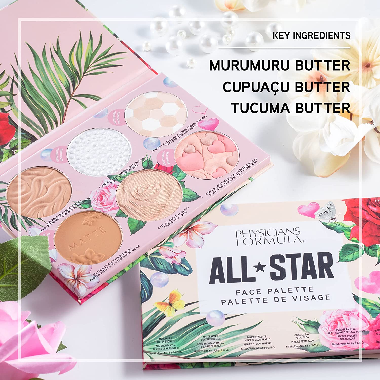 What it is: Our first-ever Physicians Formula All-Star Palette features our best-of-the-best lineup of bronzers, face powders, blushes, and highlighters in versatile matte and multidimensional shades. Get all access to our velvety-smooth formulas that provide buildable payoff and create unique, customizable looks. Why It’s Good For You: This must-have dream team palette contains our all-star powder lineup of our #1 selling Murumuru Butter Bronzer, Matte Monoi Butter Bronzer, Rosé All Day Petal Glow Highlighter, Happy Booster Glow & Mood Boosting Blush, and Powder Palettes in Mineral Glow Pearls Highlighter and Face Powder. This best of palette has all you need to create your winning complexion, whether you choose to showcase one shade alone or layer them together for a complete look.