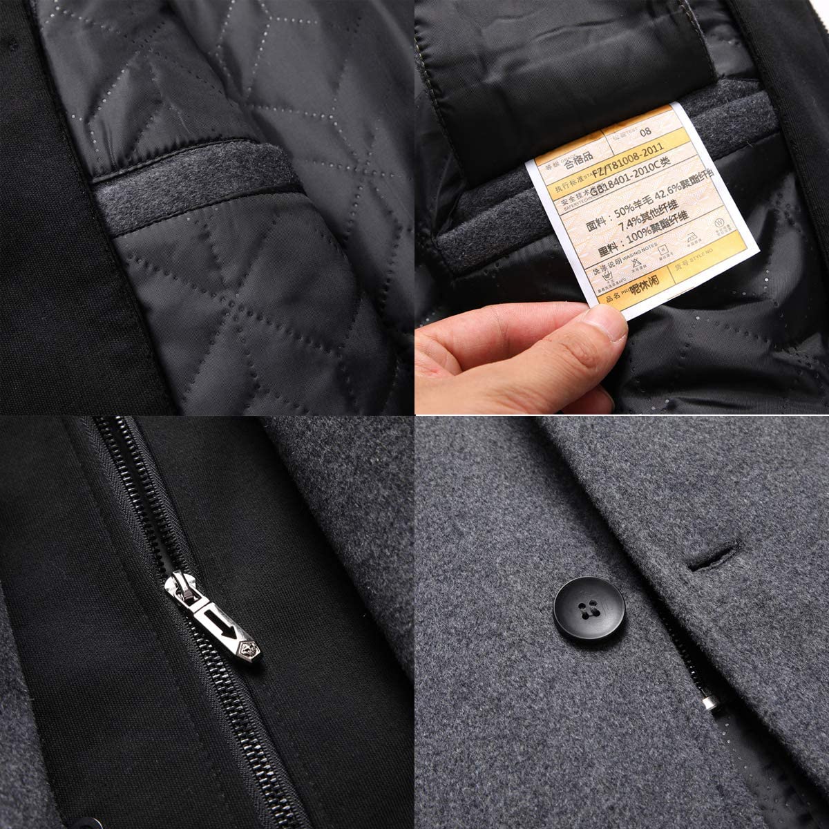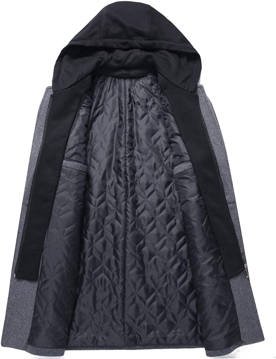 PRIJOUHE Men's Wool Coat Hoodie Long Trench Coat Cotton Casual Woollen Overcoat Jacket