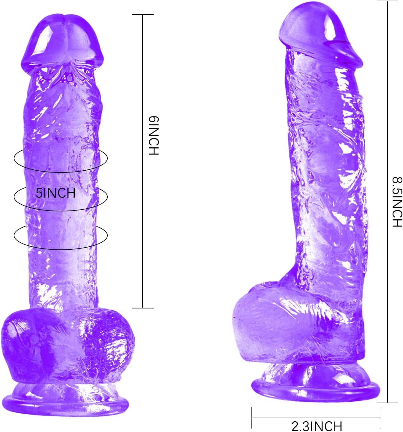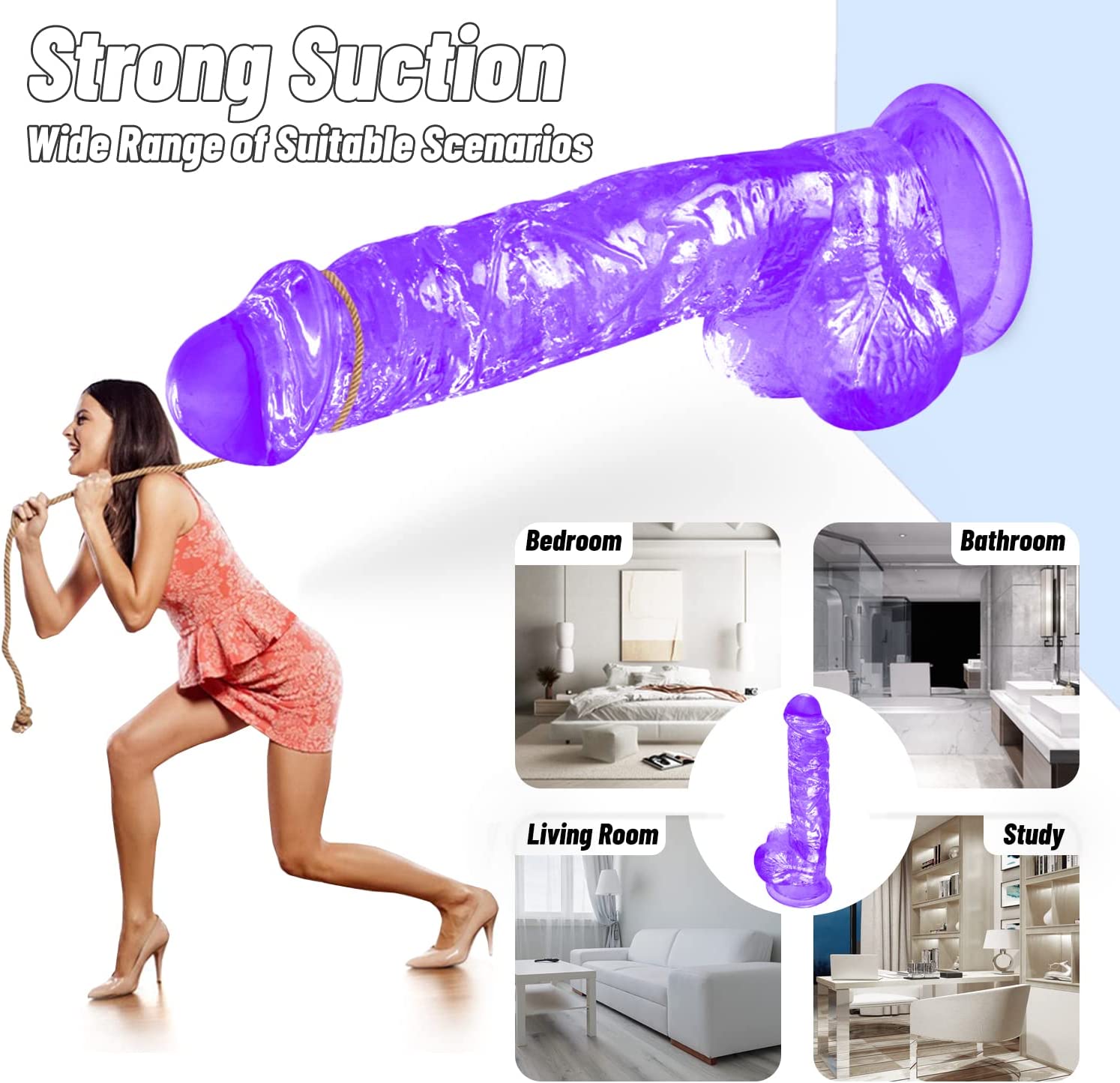 Realistic Dildo Feels Like Skin, 8.5 Inch Dildos with Strong Suction Cup for Hands-Free Play, Lifelike Huge Silicone Dildo for Beginners Body-Safe Material and Adult Sex Toys for Women, Purple Dildo