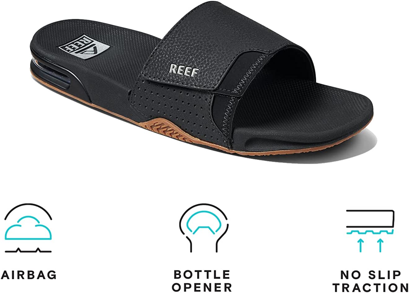 100% Fanning. 100% slide. 100% Reef. The Fanning slide is 300% awesome. With everything that makes the Fanning our bestselling men's shoe, including the crucial built-in bottle opener. Now styled as an easy on, easy off, easy everything slide. 100% do it.