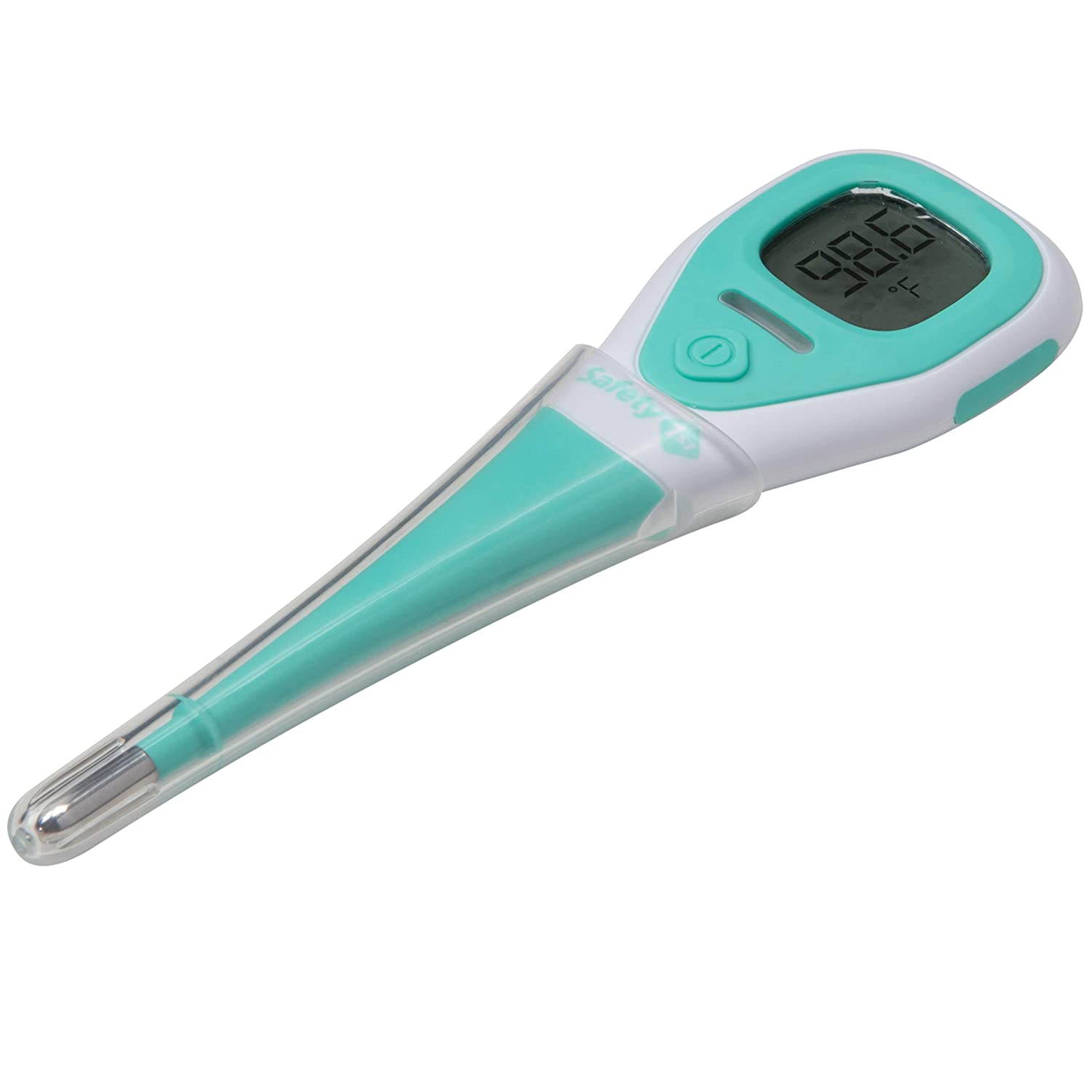 The Safety 1st Rapid Read 3-in-1 Thermometer lets you choose the best way to check temperature when your child isn't feeling well. It can be used orally, rectally, or under the arm and beeps when the reading is complete. Temperature reading time is only 8 seconds! The flexible tip is more comfortable for baby during a rectal reading and features an over-insertion gauge that gives parents added confidence while checking for fevers, so that they can focus on helping baby feel better. The Rapid Read 3-in-1 Thermometer includes both a protective storage case and a long life battery.