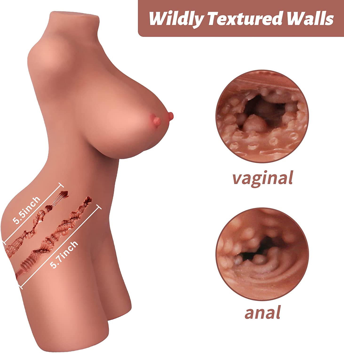 Sex Doll Male Masturbator with Torso and Big Boobs Pocket Pussy Ass Lifelike Masturbator Toy for Vagina Anal Breast Sex, Realistic Sex Dolls for Men Masturbation Brown 6.9 LB …