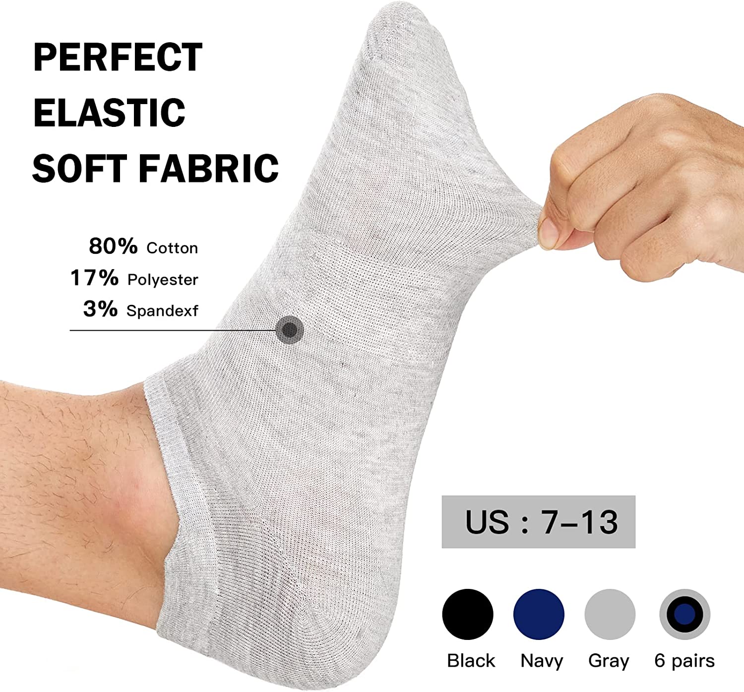 SIMIYA Ankle Socks Men Cotton Low Cut Socks 6 Pairs Athletic Running Socks for Men (7-13)