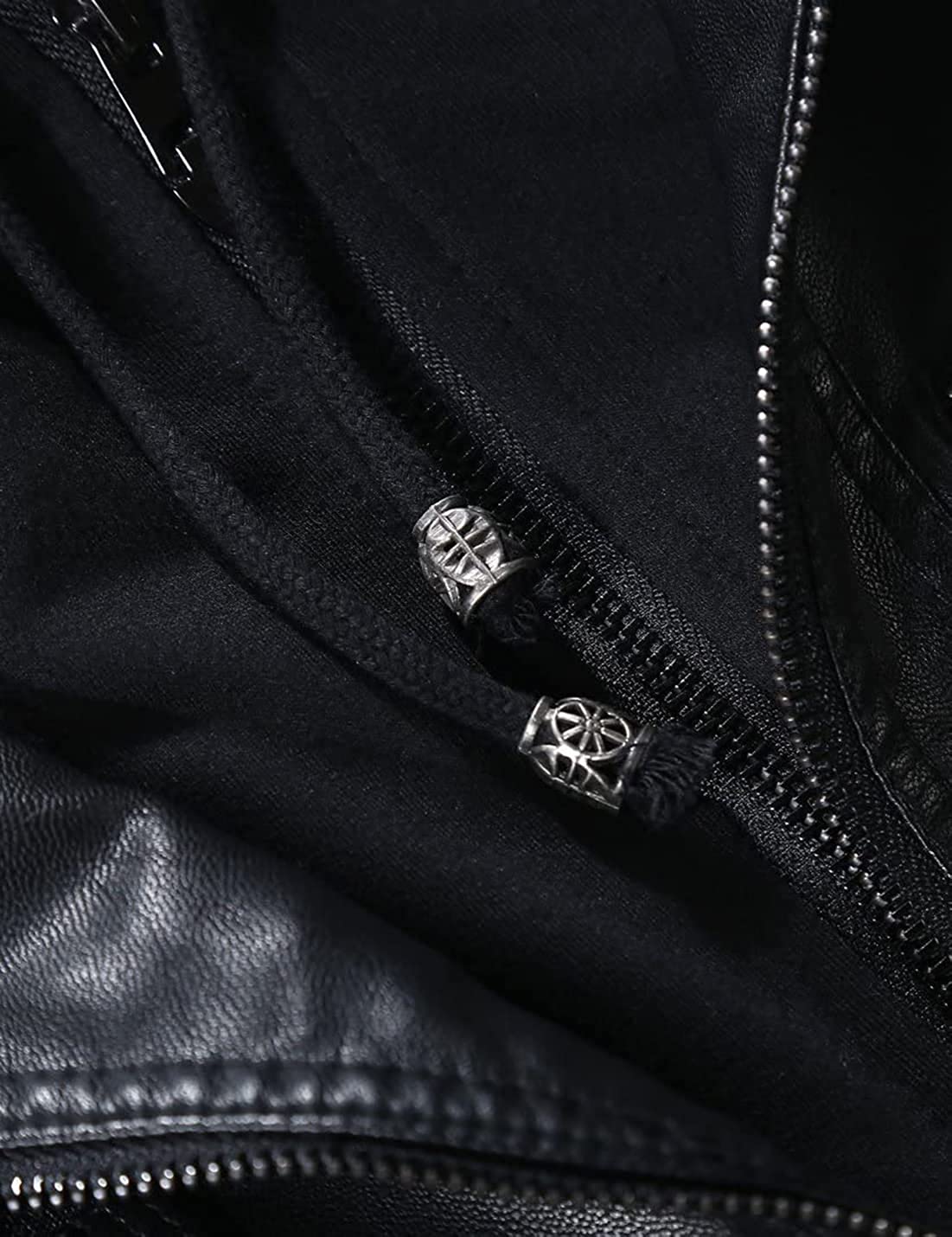 Springrain Women's Casual Stand Collar Detachable Hood PU Leather Jacket