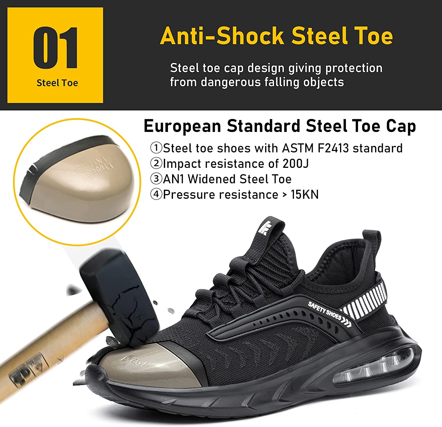 Steel Toe Shoes for Men Work Women Lightweight Air Cushion Sneakers Slip Resistant Safety Work Boots Indestructible Shoe