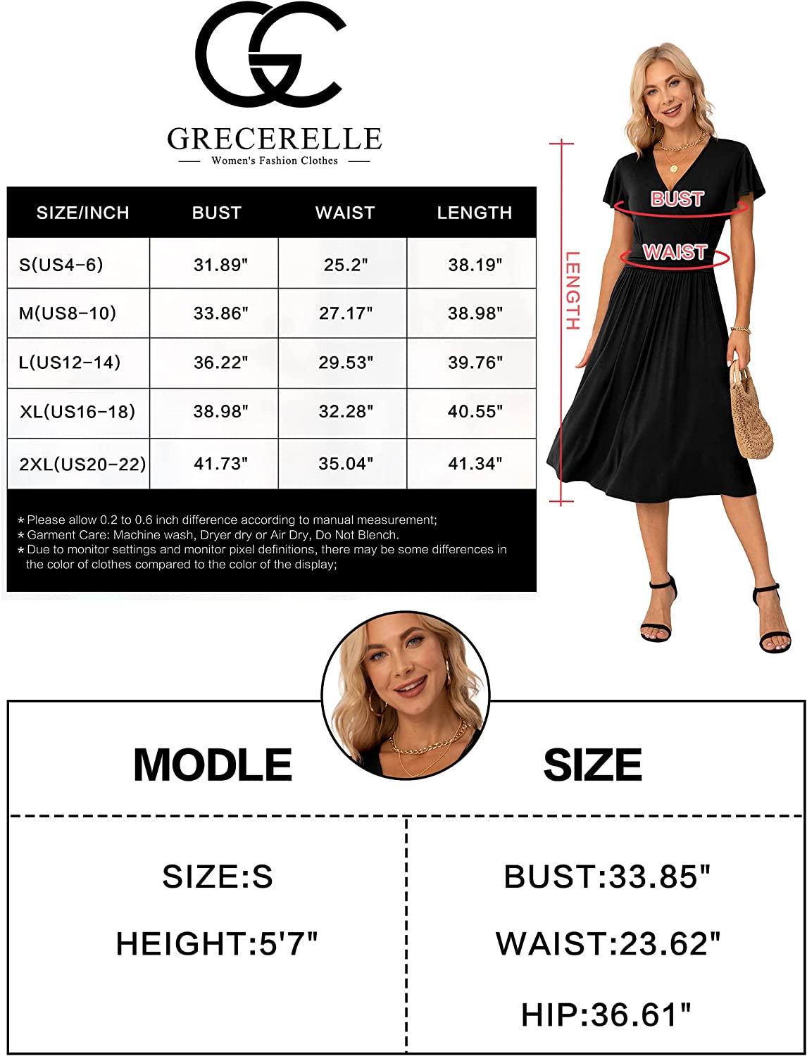Summer Dress for Women, Casual Ruffle Short Sleeve Dresses, Wrap V-Neck Dress