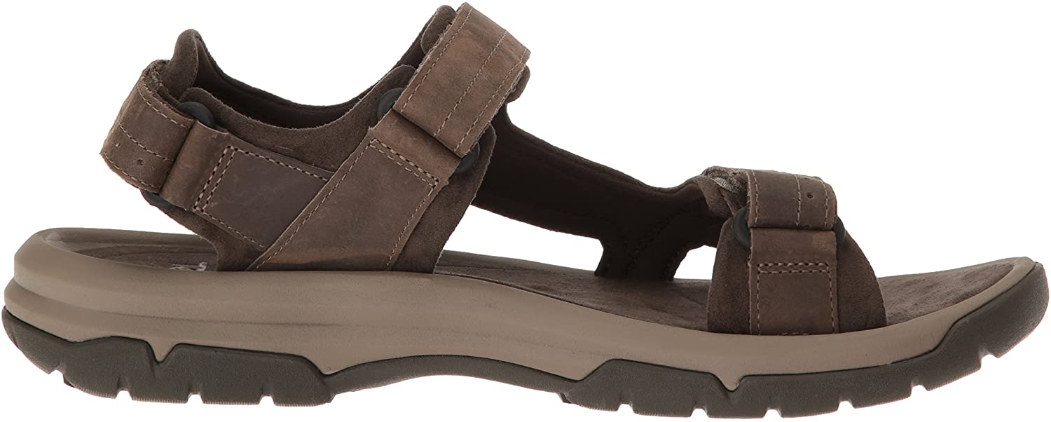Men's Teva, Langdon Sandal. Be ready for adventure in these durable outdoor sandals. The waterproof leather upper and grippy rubber outsole makes this style perfect for hiking trails. Waterproof leather and fabric upper Three adjustable hook and loop closure straps for a secure fit Breathable fabric mesh strap linings Molded and lightweight cushioned footbed for added comfort Nylon shank helps stabilize and support your foot 1 1/2 inch heel with a 1 inch front platform with a rubber outsole for added traction and durability. Heel Height of 1.50 inches. Platform Height of 1.00 inches.