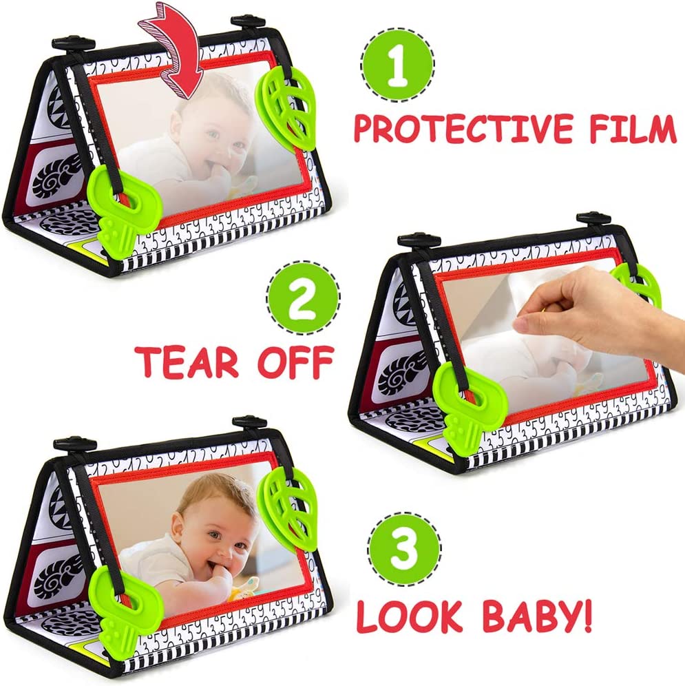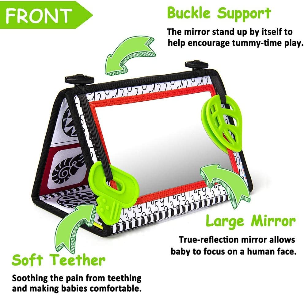 teytoy Tummy Time Floor Mirror, Double High Contrast Baby Toys Black and White Newborn Toys 0 3 Months Brain Development,Tummy Time Mirror Toys for Infants Boys and Girls Sensory Babies Toy 0-6 Month